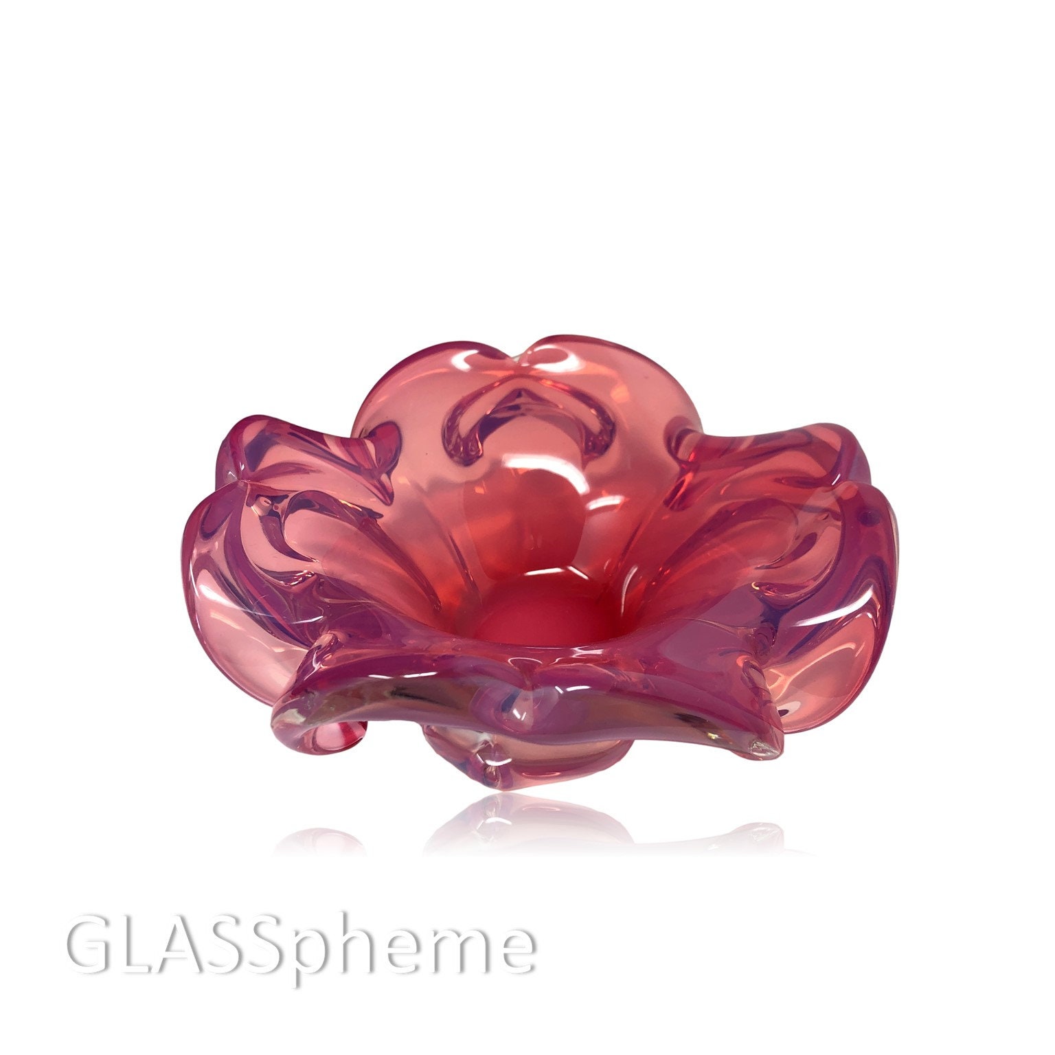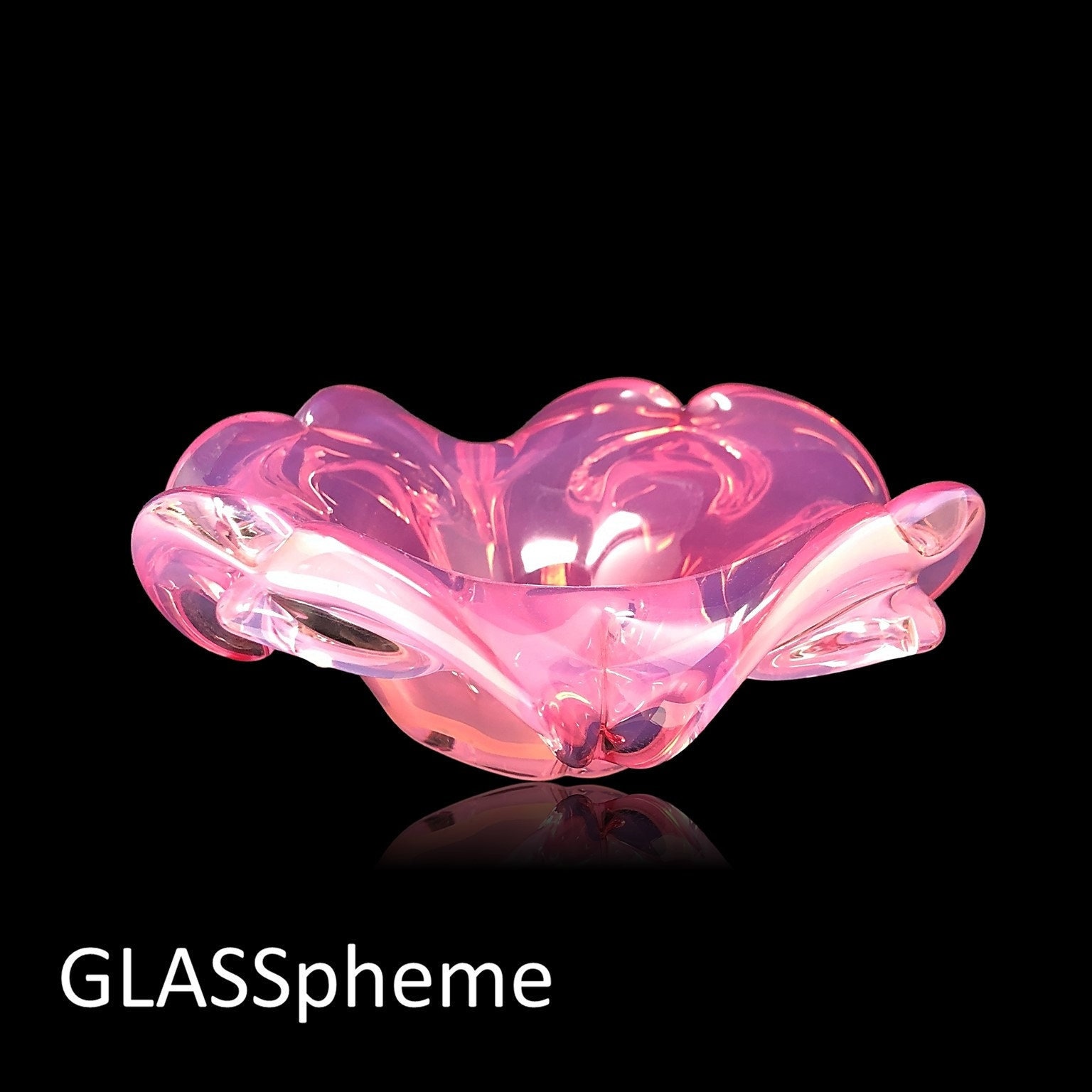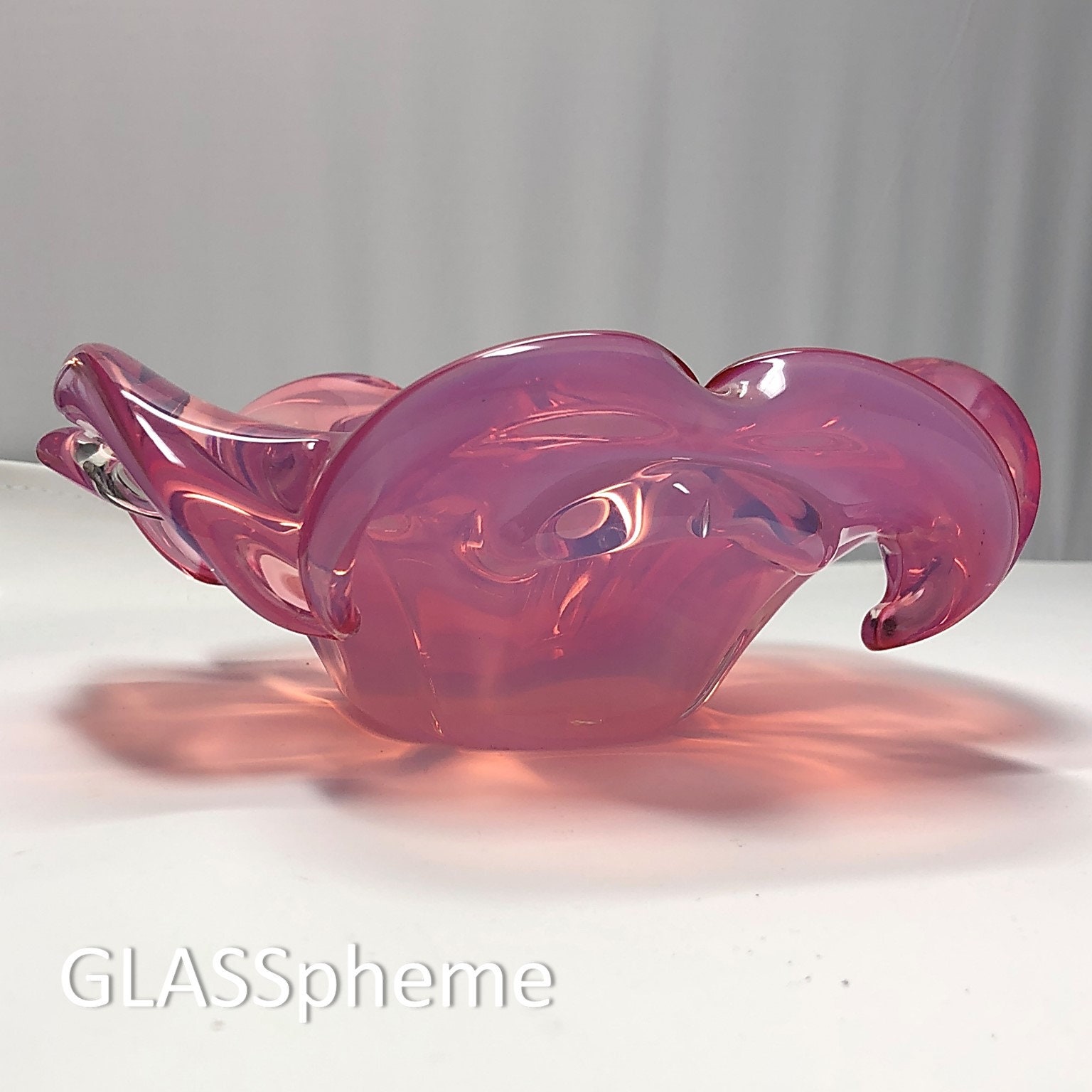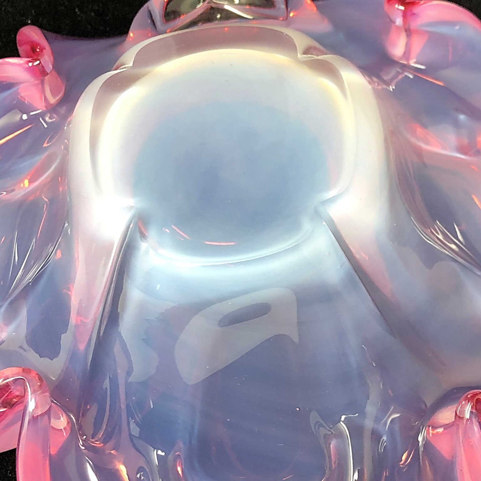 STUNNING mid-century Murano opalescent/opalino cased glass bowl, maker unknown. This opalino glass is so pink and dreamy, it's mystical! A real beauty!