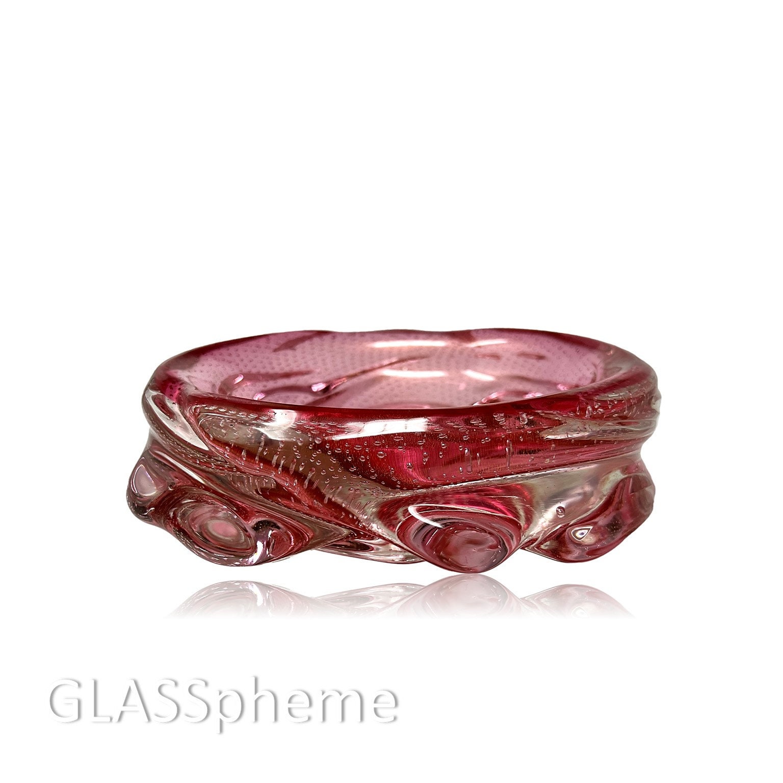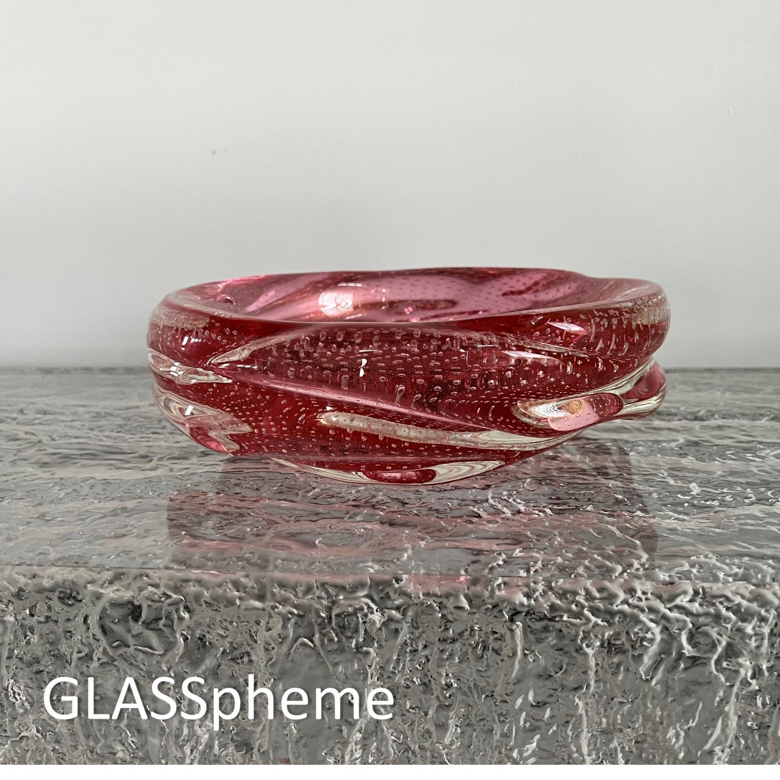 This SPECTACULAR organically shaped gold-infused cranberry bullicante glass bowl or centerpiece by Archimede Seguso, documented in Pina's ARCHIMEDE SEGUSO (see photo above), is the largest example I've ever come across. As with many Archimede Seguso pieces, this beauty, which Archimede designed in tandem with Flavio Poli in the 1930s, is also featured in the Seguso Vetri D'Arte catalog. WHATTA BEAUTY! With 10"+ diameter and weighing over 9 lbs, this special unicorn piece will blow you away! And, given its minty condition, this would make an awesome gift.