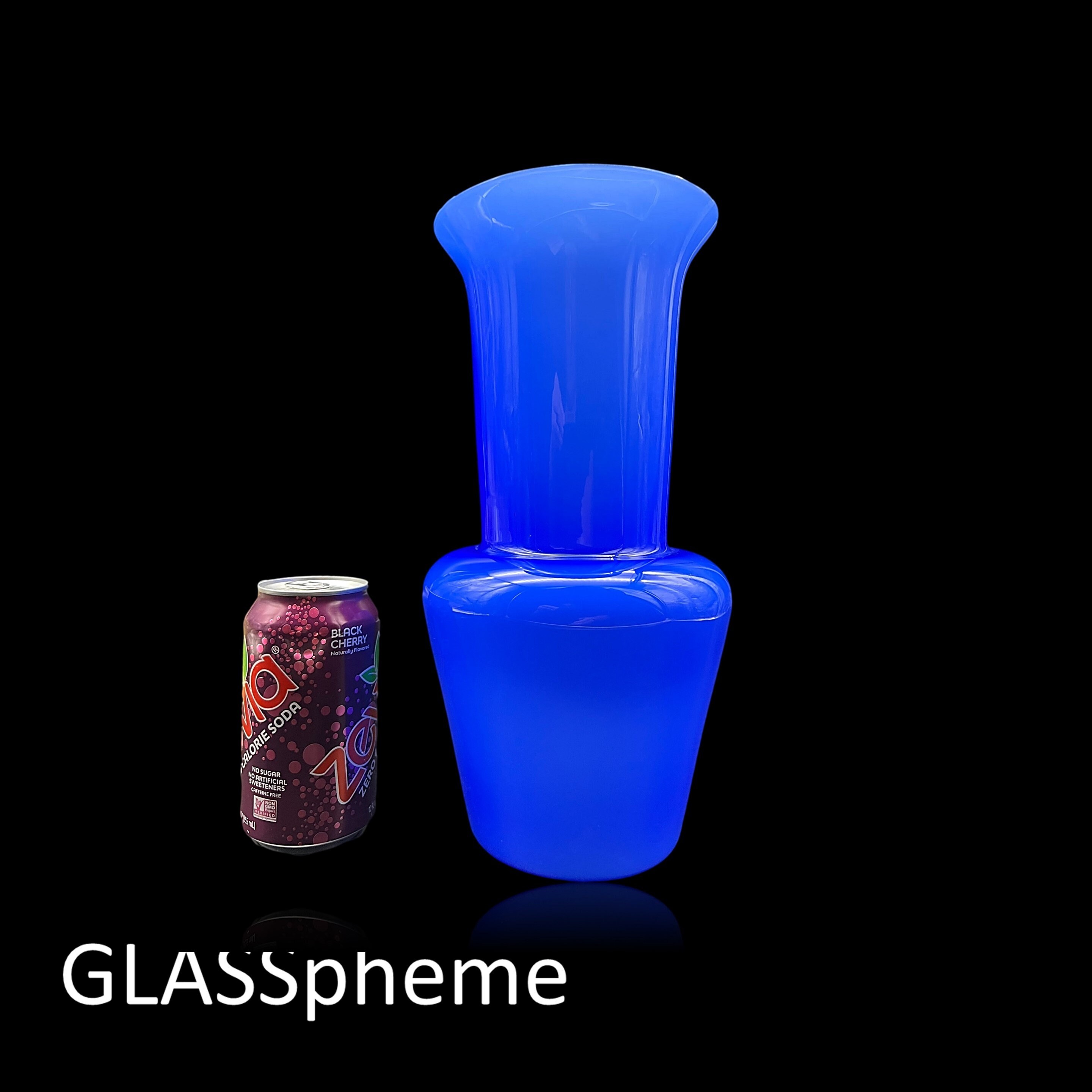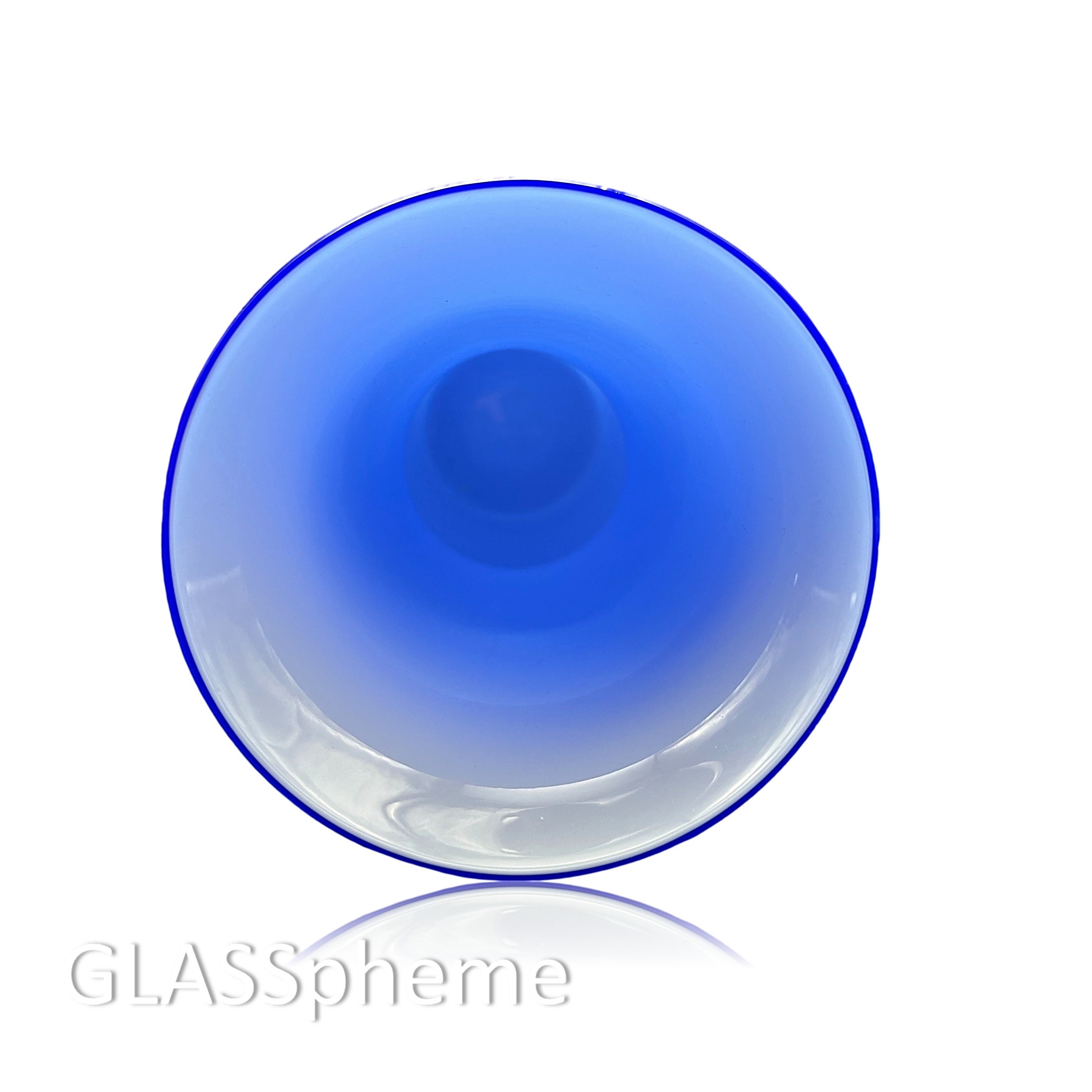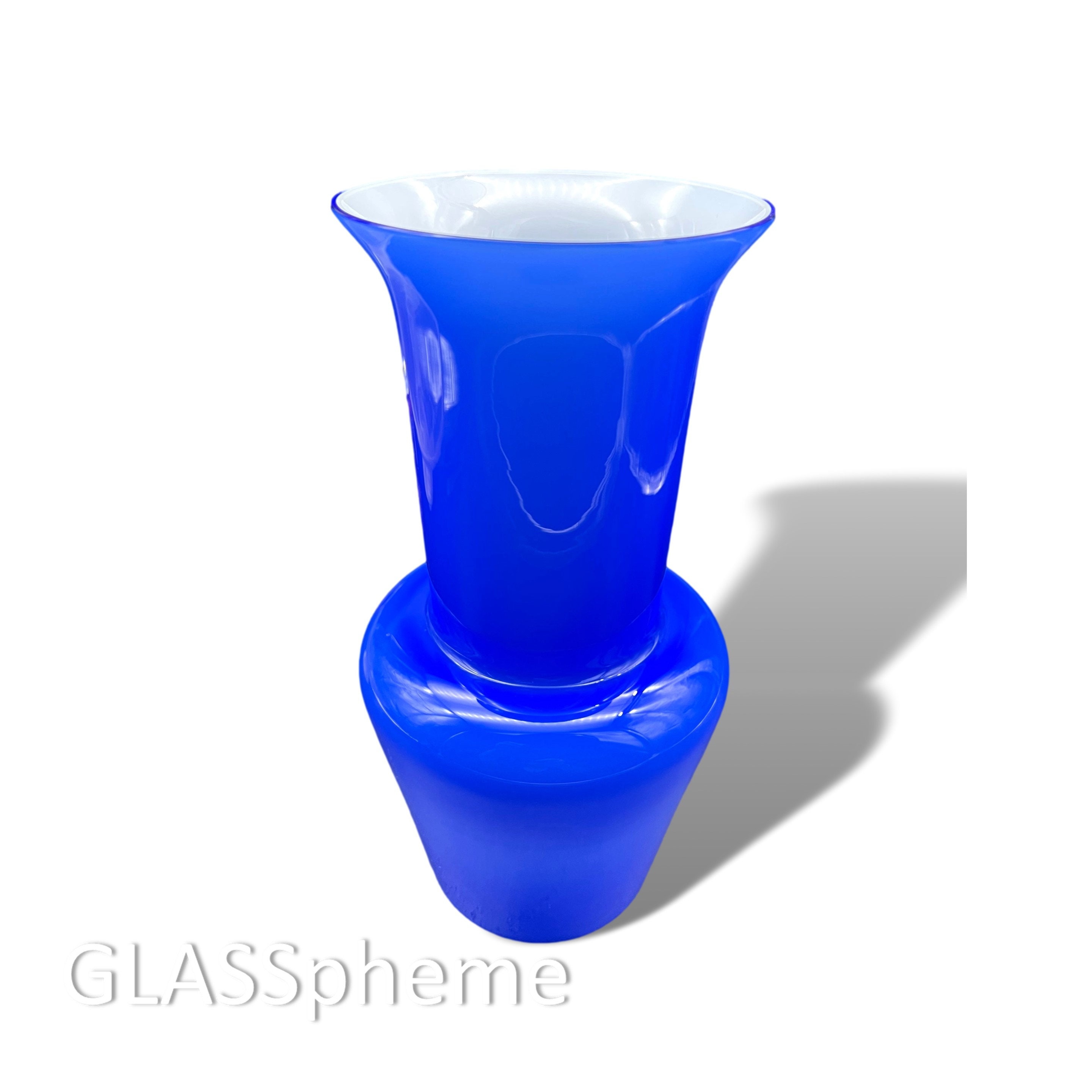 Salviati's cased glass is a whole other ballgame. The fineness, delicateness, sheer perfection of this form and its execution is exquisite! No tool marks, no bubbles, no production slip-ups. This sublime cobalt blue vase, roughly 12" tall, is signed on the base. A future collector's item, this modern vase will be a magnificent addition to your home's decor--especially if you need the perfect vase for cut flowers!