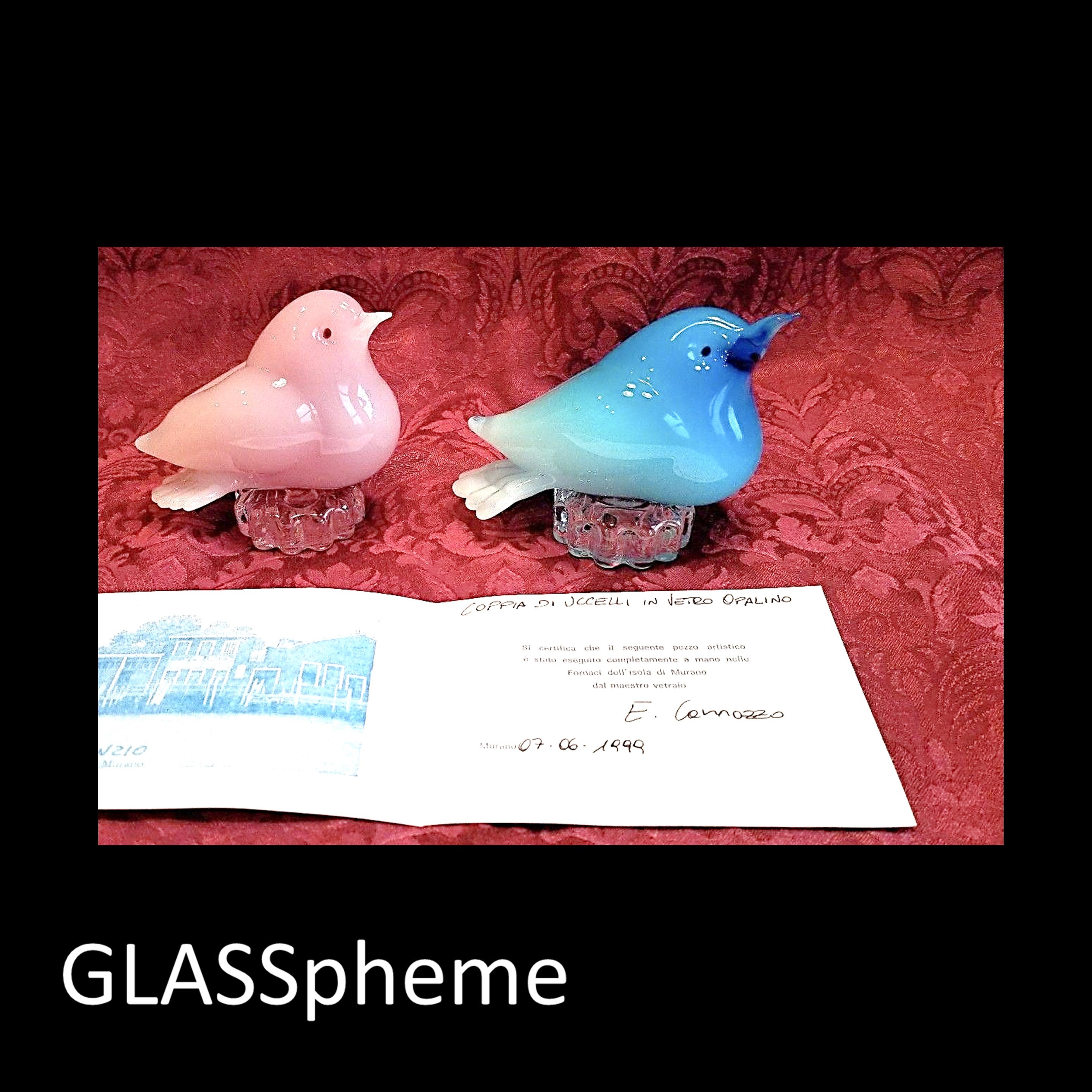 You've seen these dazzling compact opalescent MURANO beauties before, most often advertised as vintage Archimede Seguso alabastro sculptures, but that's WRONG! These are more modern creations by Enrico Camazzo (see the last photo for reference), and you can see variations of these for sale in NEW MURANO glass shops online (for $200 each). So they're not Seguso, but they sure still are GORGEOUS and in excellent condition! Take your pick of colors or buy the set!