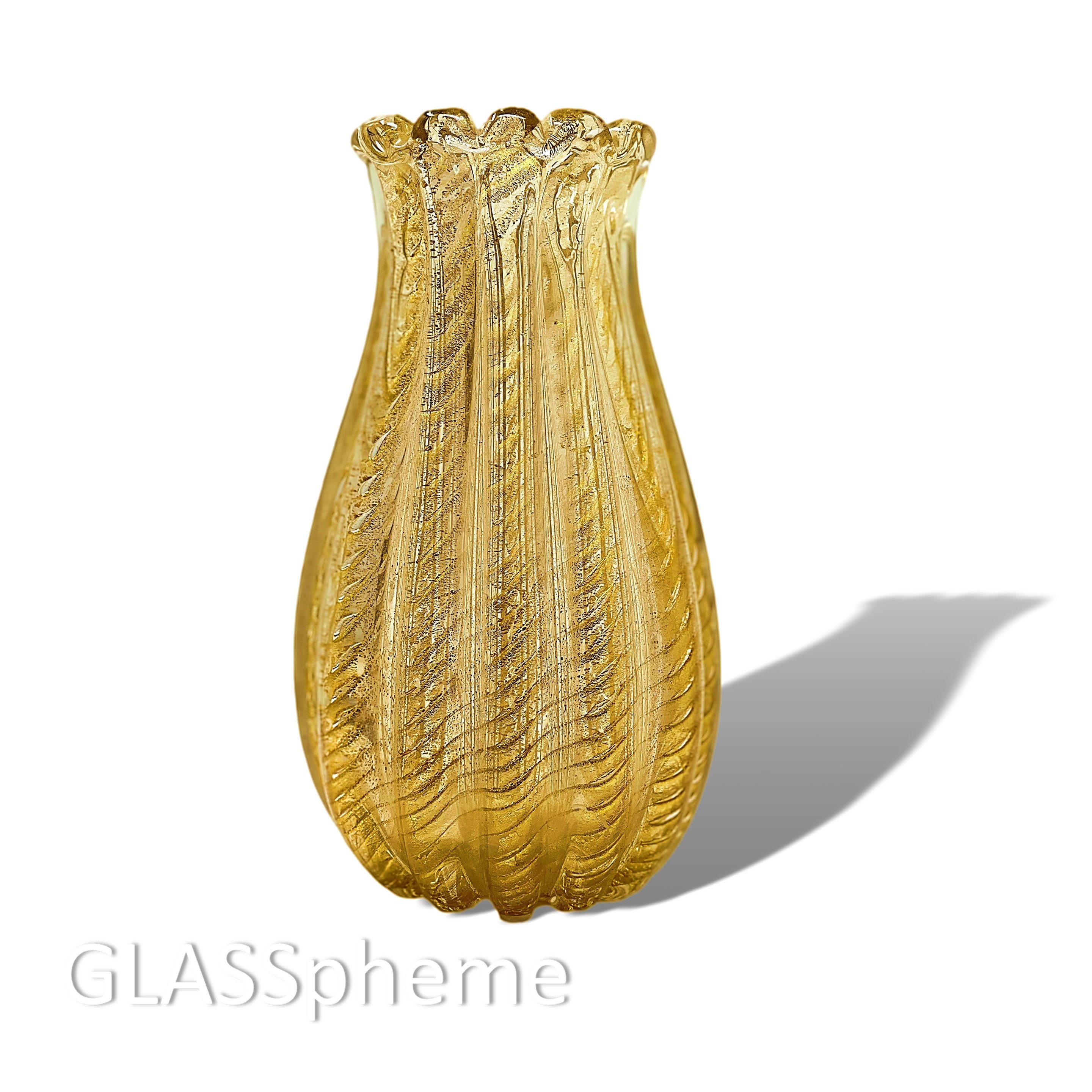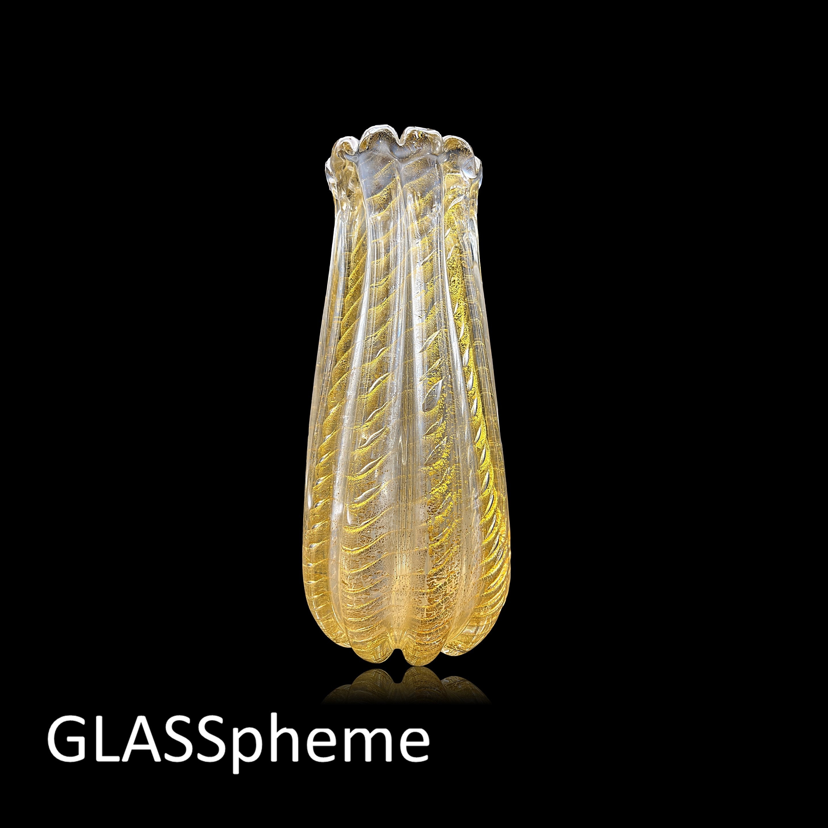 Barovier & Toso's "Cordonato D'oro" (or "Golden Rope") creations, designed by Ercole Barovier in the mid-century period, are amongst its most lavish and highly coveted. And, and in the case of this large breathtaking vase, increasingly to come by. This truly exquisite C. 1950s testament to Barovier's genius is the embodiment of the sheer LUXURY of Murano glass and is an heirloom to be treasured. Unsigned but documented exhaustively, this beauty is in EXCELLENT condition.