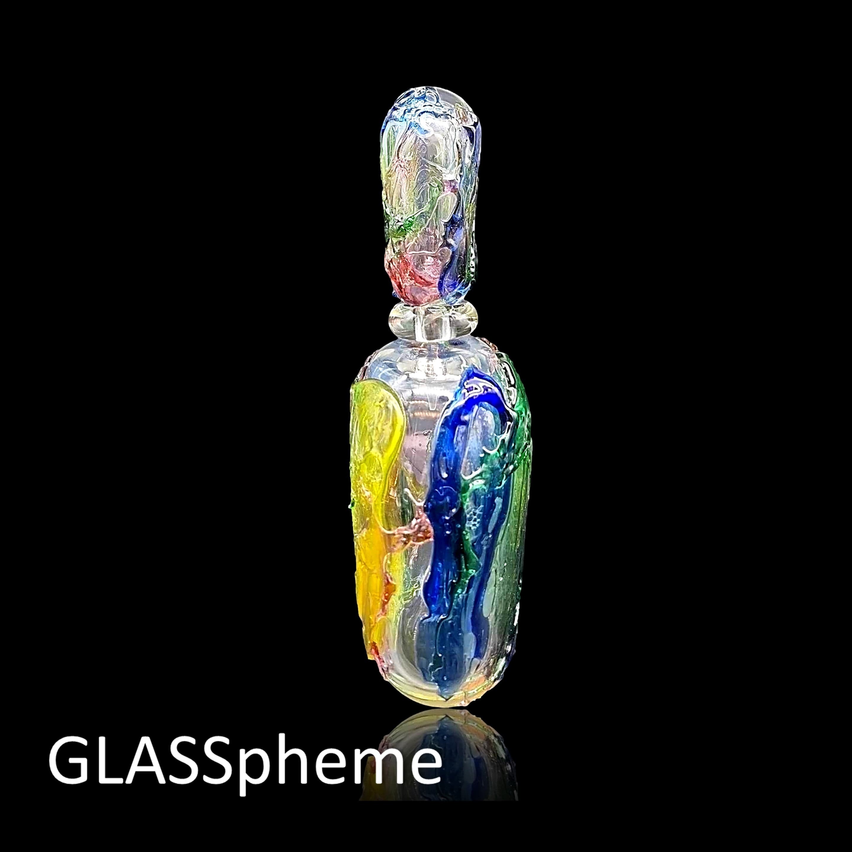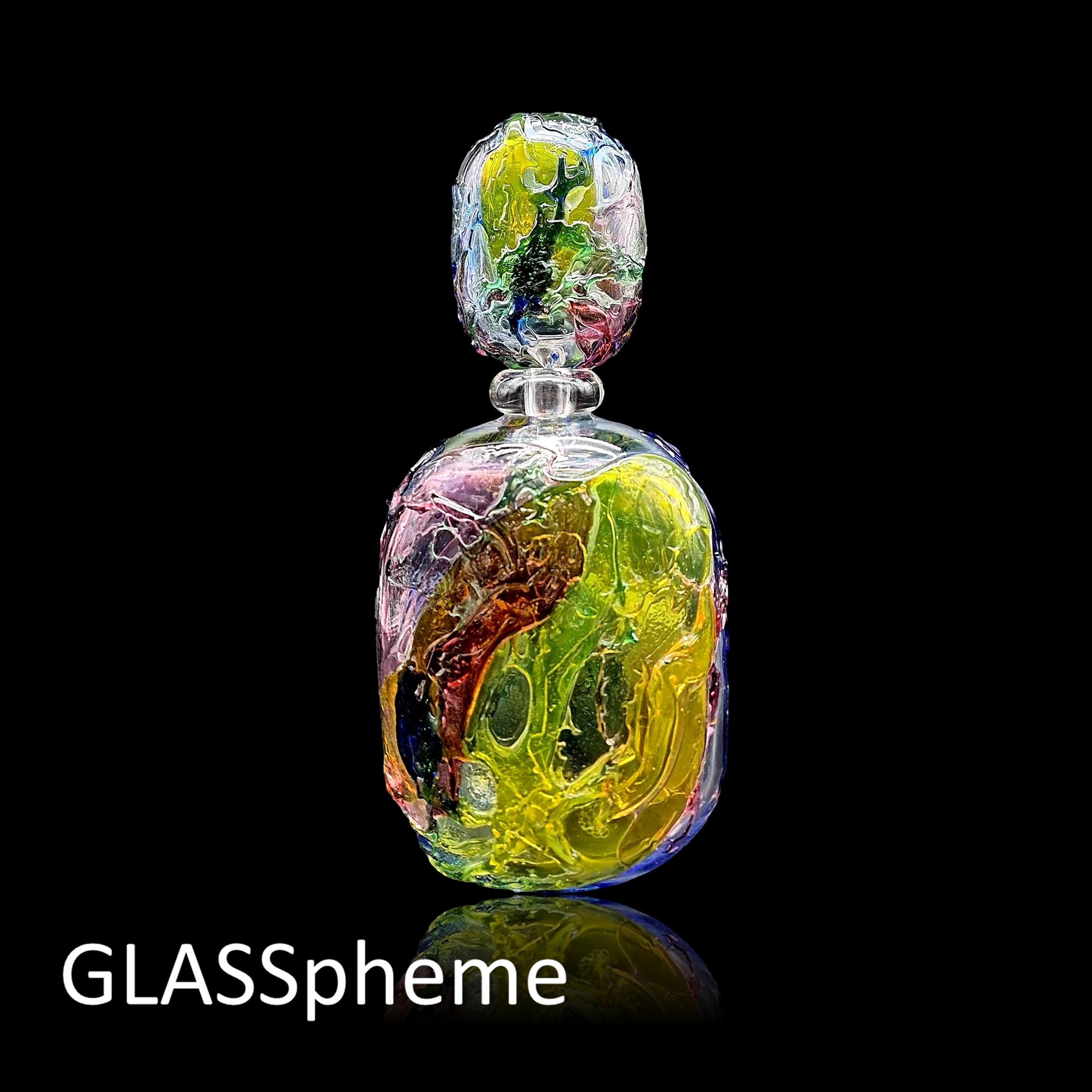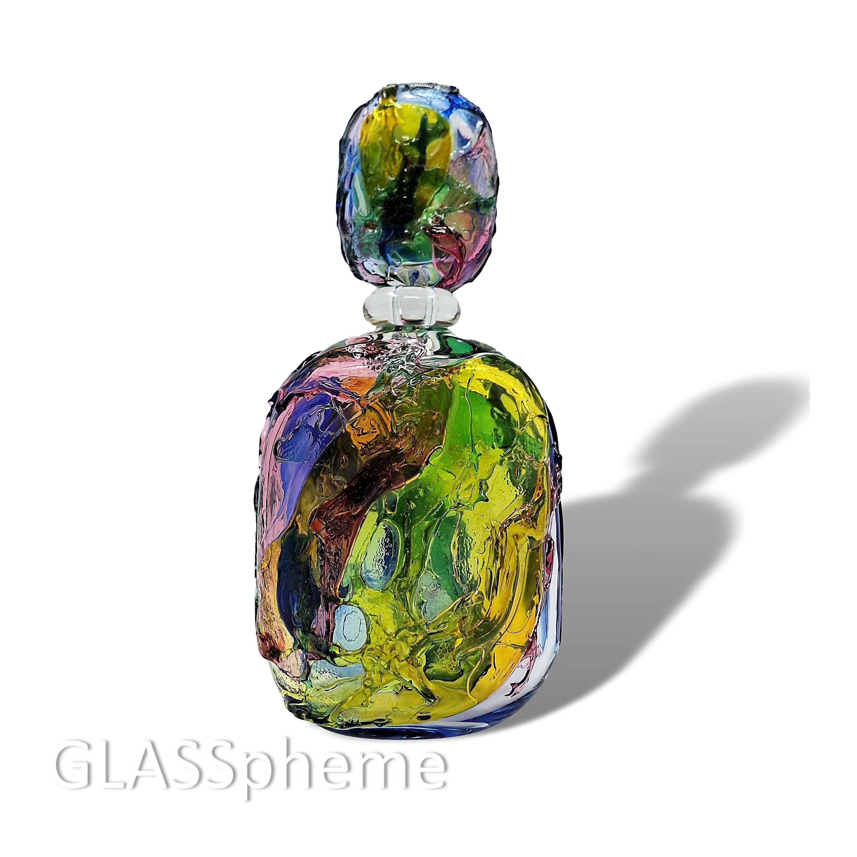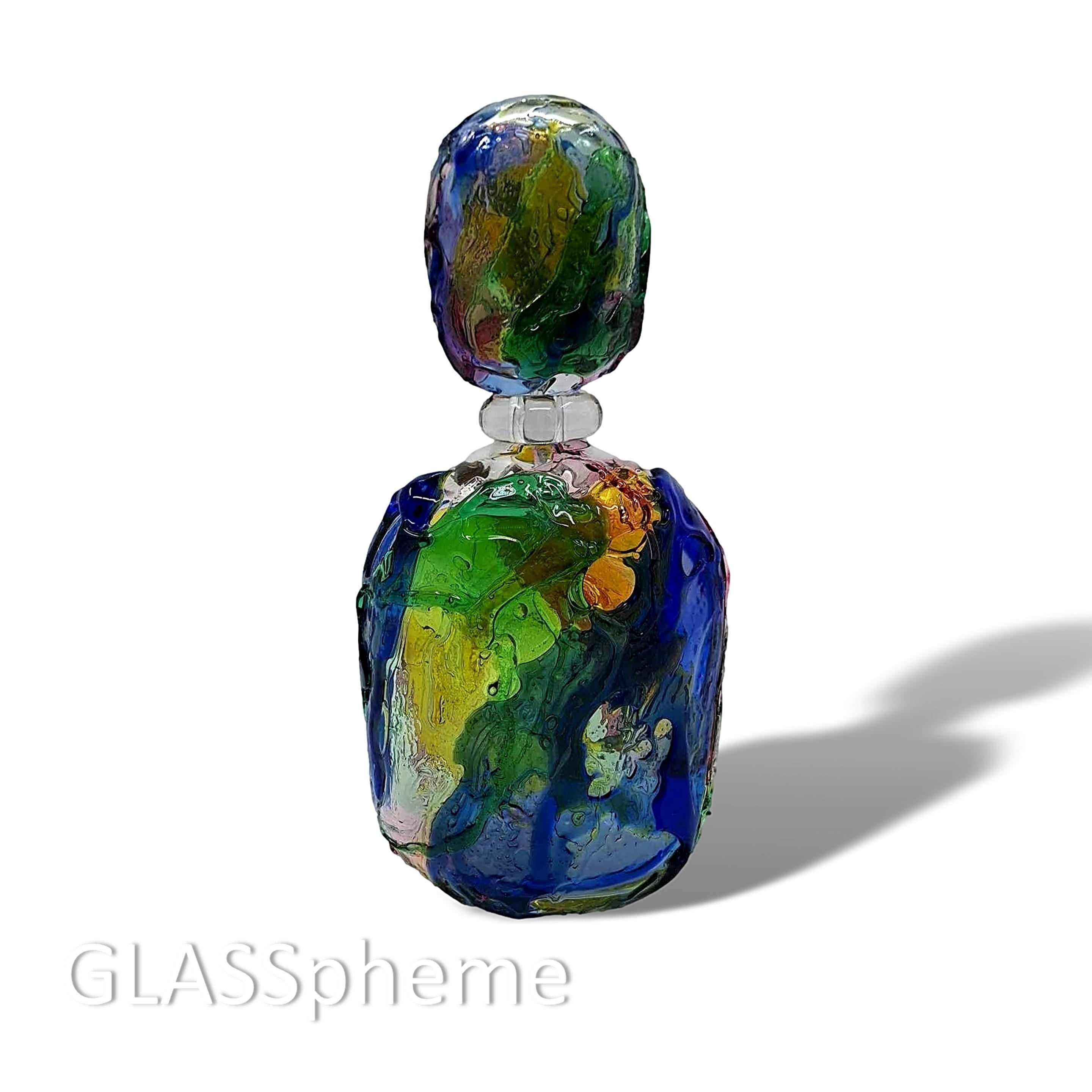 What is this SORCERY? This crazy-big, crazy-colorful, crazy-magnificent abstract MURANO GLASS 'perfume' bottle, by Formia Vetri di Murano, will take your breath away! Standing 14"" tall with stopper, this marvelous beauty is done using the SBRUFFI technique layering large colorful "blobs" of glass over a clear crystal base. Formia, established in 1962 (and bankrupted in 2016 but later reorganized under Fornace Mian), has produced some of the most highly coveted Murano glass in the post-mid-century period and this gorgeous piece demonstrates why. I've seen a few examples of this design in vases, but never in this oversized perfume decanter, so move fast--it is unlikely to last! ps. The bottle is signed Formia Murano.