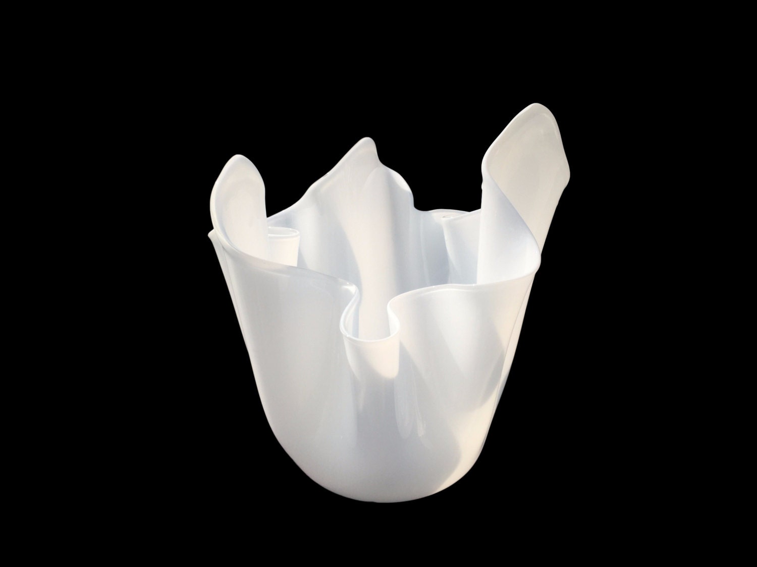 Venini's iconic fazzoletto vase was designed by Fulvio Bianconi in 1948 and has consistently been in production since then, but naturally, the mid-century pieces are far far rarer and more collectible. Important to note: fazzolettos ("handkerchief" vases) have long been a mainstay of Murano amongst many of the makers. Artistry and form aside (the movement in this vase is extraordinary), virtually ALL Venini fazzolettos are signed. Certainly, a couple here or there may have been missed, but given that the market is flooded with imposters, only signed pieces should be assumed to be authentic. Another hallmark of Venini fazzolettos are the polished pontil--some issue from China sport rough pontils.