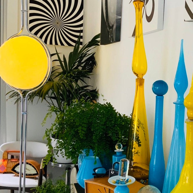 What could be better than giving a gorgeous piece of vintage glass as a gift? (Aside from getting one, that is.) Glass is beautiful and functional--mostly! Consider a super mod biomorphic bowl or cased glass jar for a vanity or dresser, a platter/centerpiece for fruit on a countertop, or a vase for cut flowers. Not only does vintage glass bring exquisite delight to the most mundane of household functions (you should see our soap dishes), but our beauties increase in value over time. Send us a note telling us your purchase is a gift, and we will send it along with your personalized gift card, colorful tissue paper and a bow. (You alone will receive the receipt by email.)