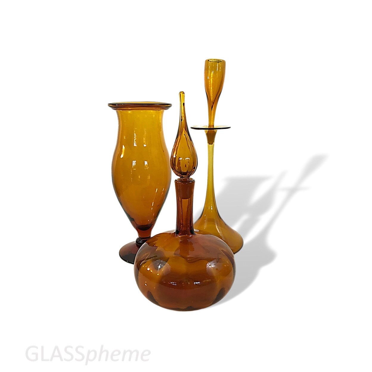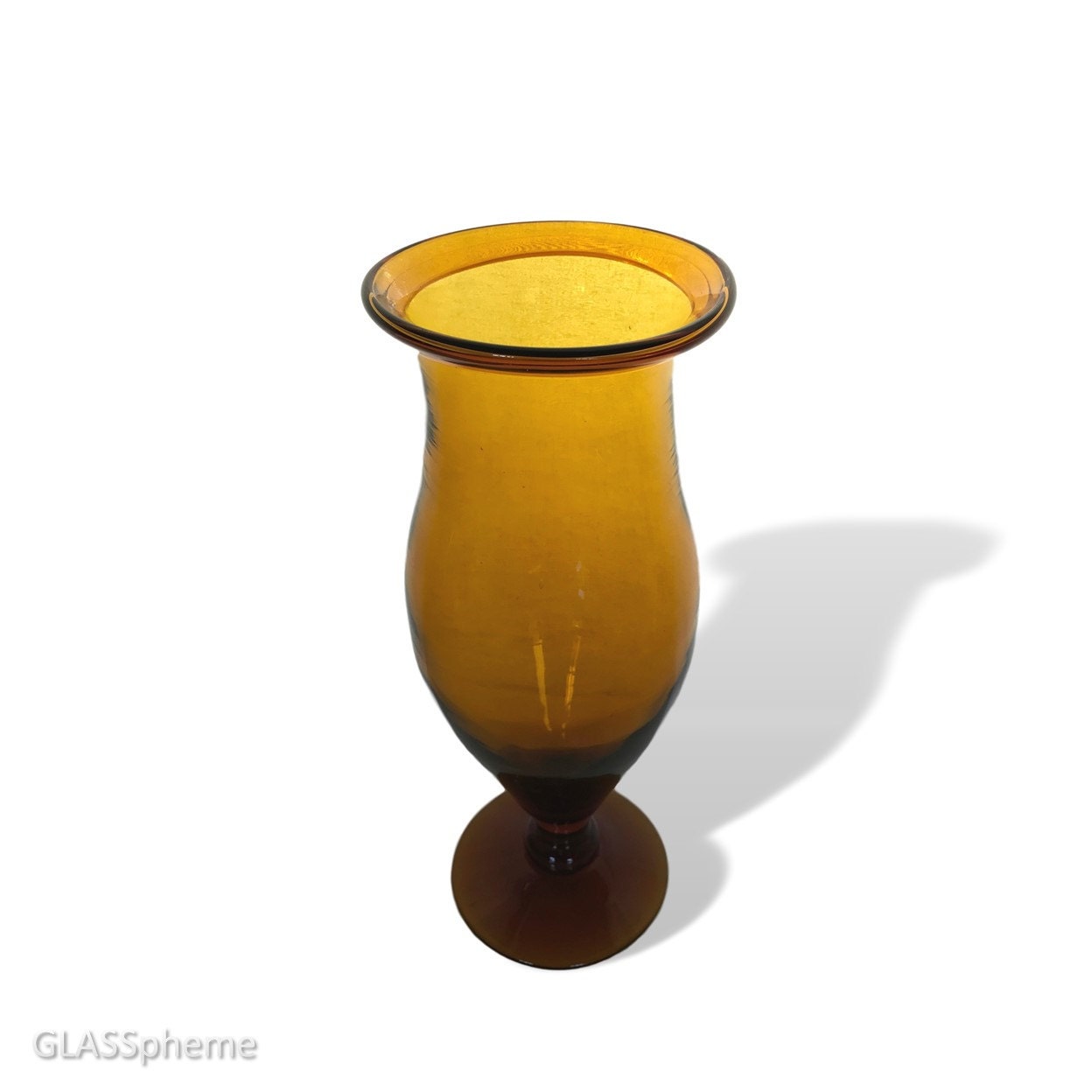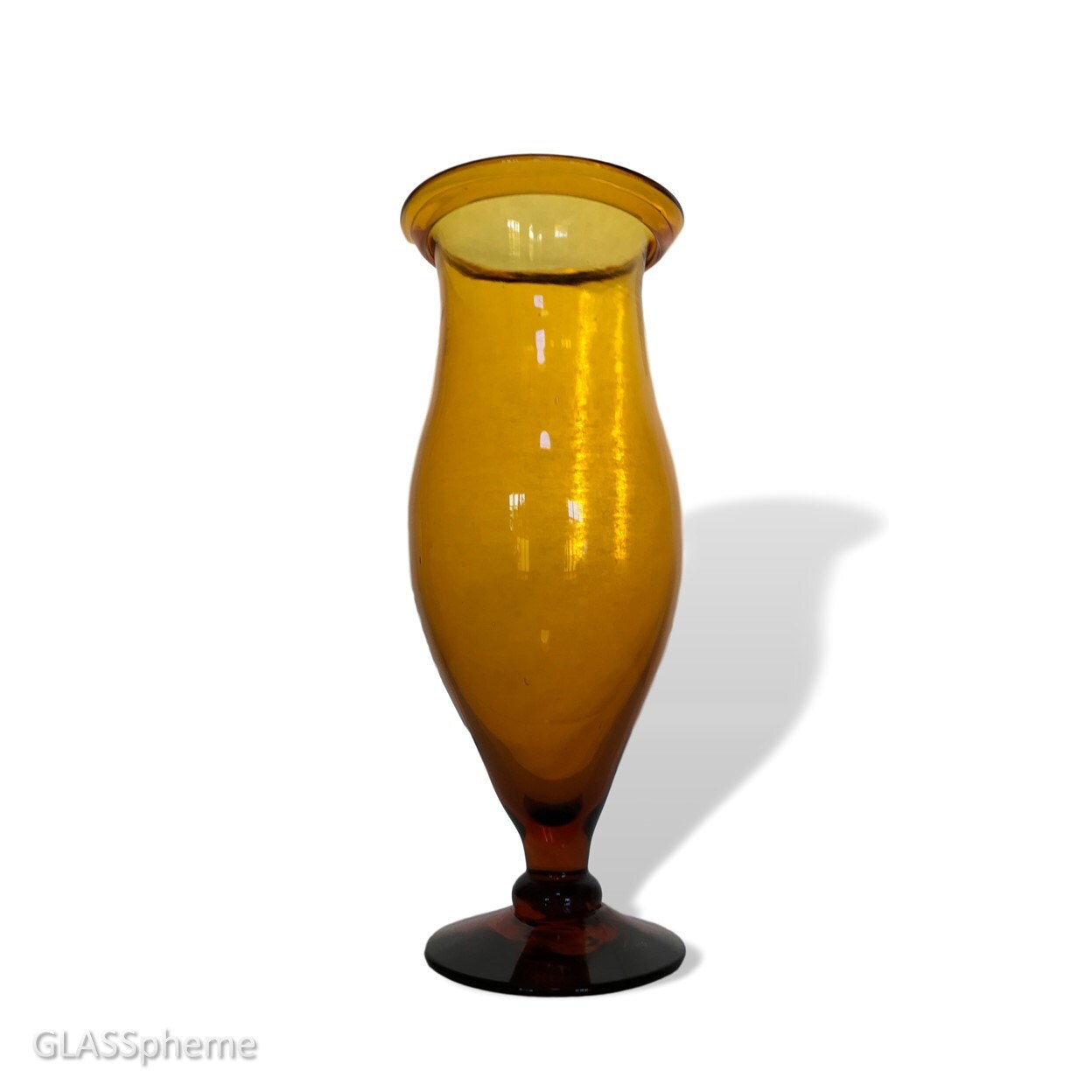BLENKO Joel Myers #6524s folded rim footed vase in HONEY was produced only in 1965 and 1966, so be sure to grab one when you can. This elegant curvaceous beauty stands nearly 14 inches tall and is in perfect pristine condition.