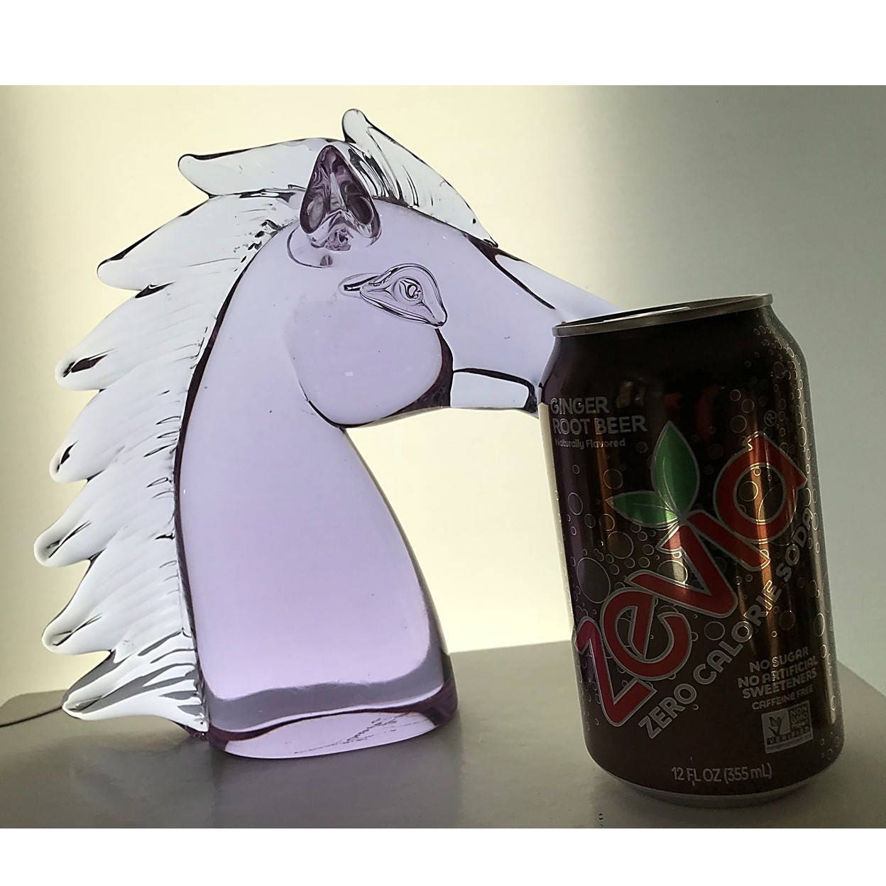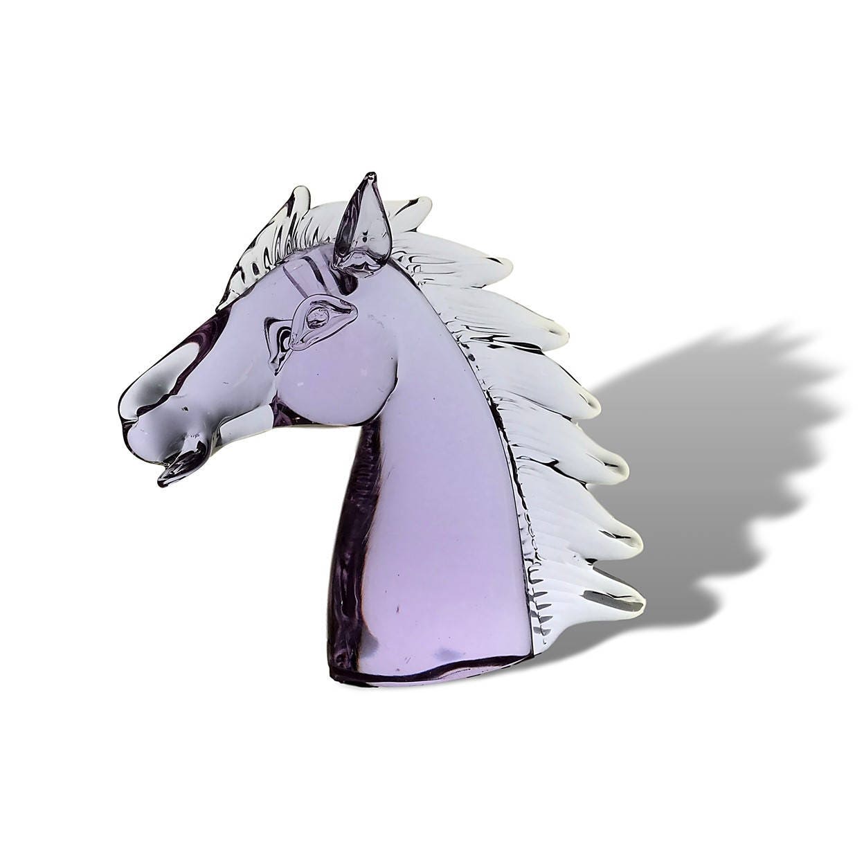 What an incredibly magical piece of art! You're looking at a signed mid-century Lucio Zanetti glass horse head | bust done in Alexandrite | Neodymium. Standing 8 inches tall and 8 inches wide, this is one of the largest specimans I've ever come across, and the range of colors and moods this gorgeous piece expresses as the light changes is spectacular. And--it's simply in perfect shape--no damage anywhere!