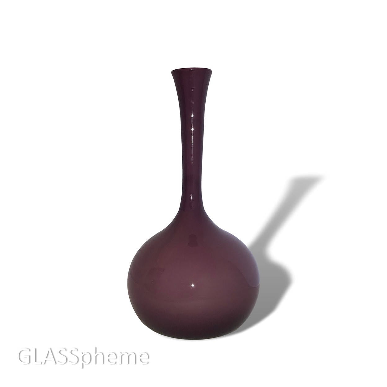 This mammoth ATOMIC AGE cased glass masterpiece comes along almost never, the ultimate 'GET' for mid-century modern glass collectors and designers alike, particularly in this creamy dreamy AMETHYST | PURPLE (it is indeed BOTH, depending on the lighting). This is the thick, heavy 1950s-60s Empoli cased glass, and not one of the thinner more lightweight confections of the 1970s. The bulbous base of this beauty is roughly 10" in diameter.