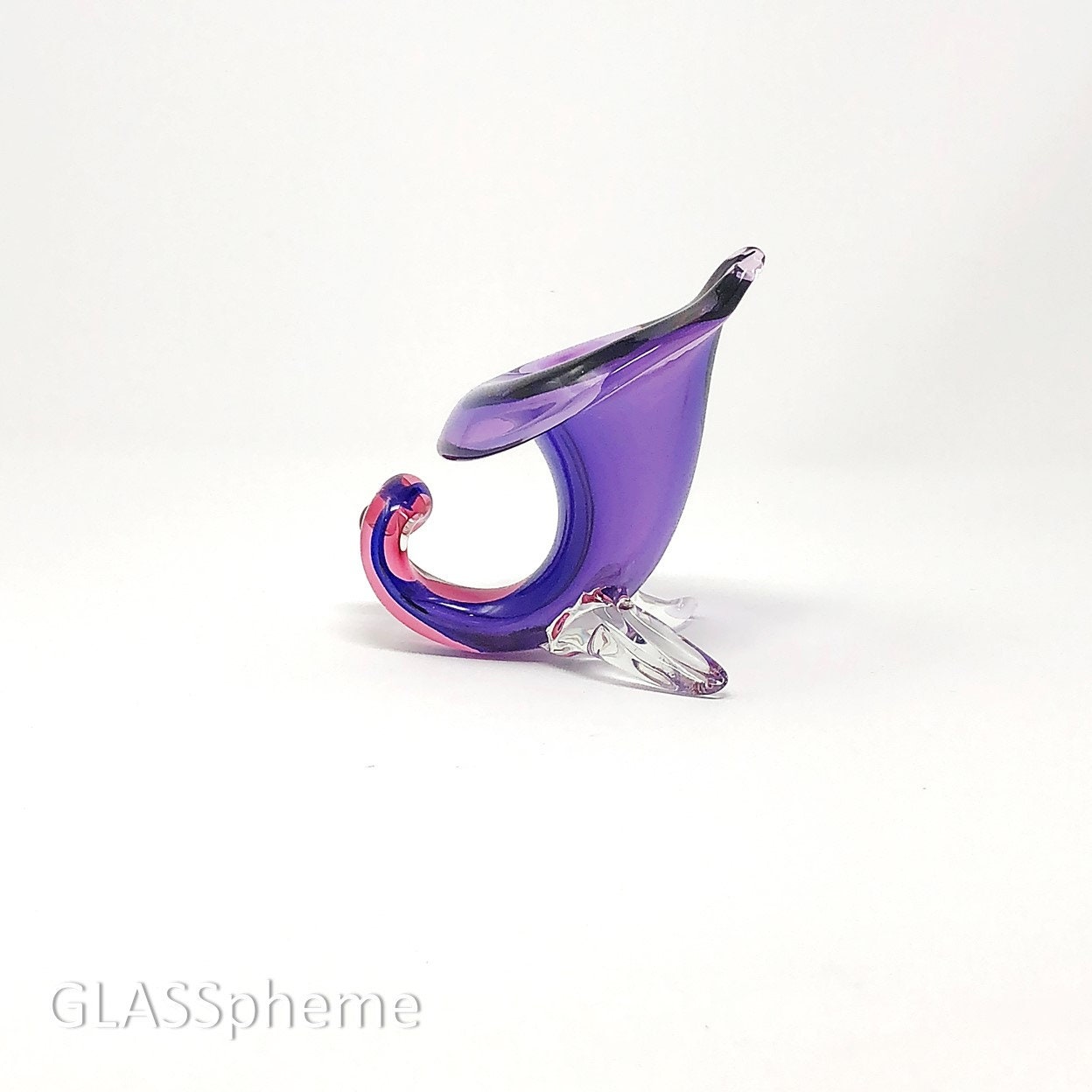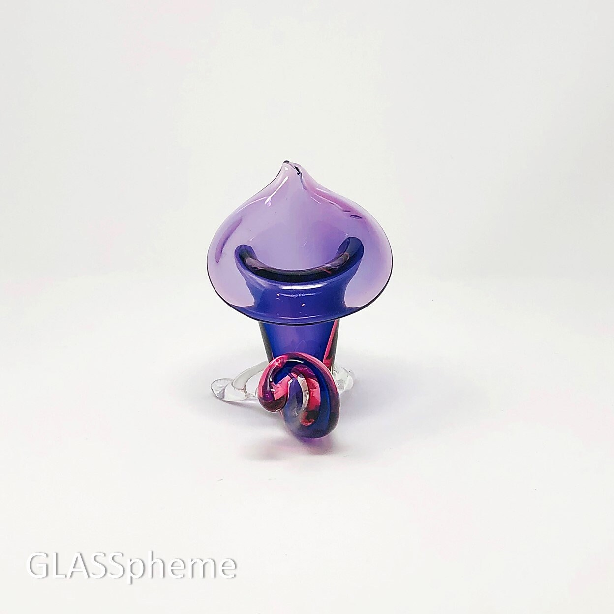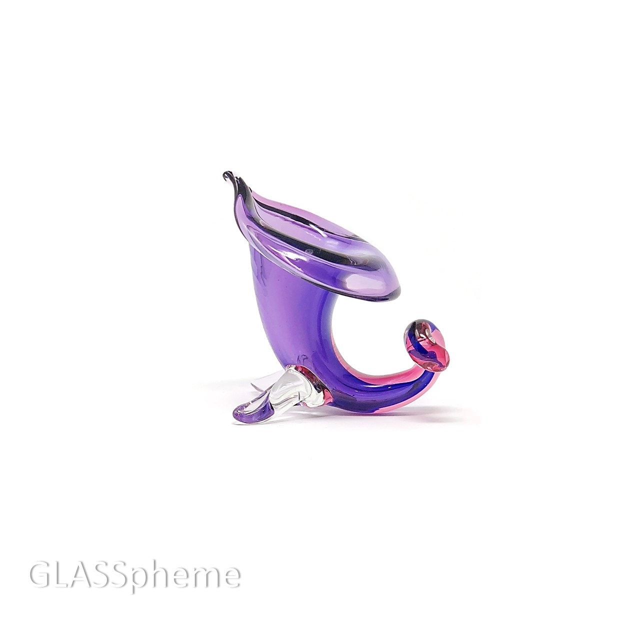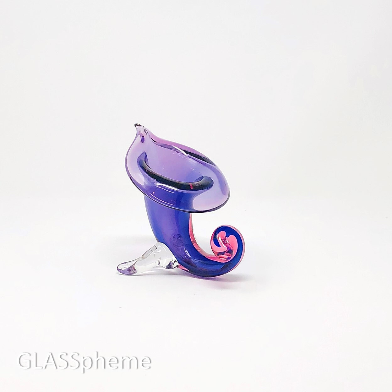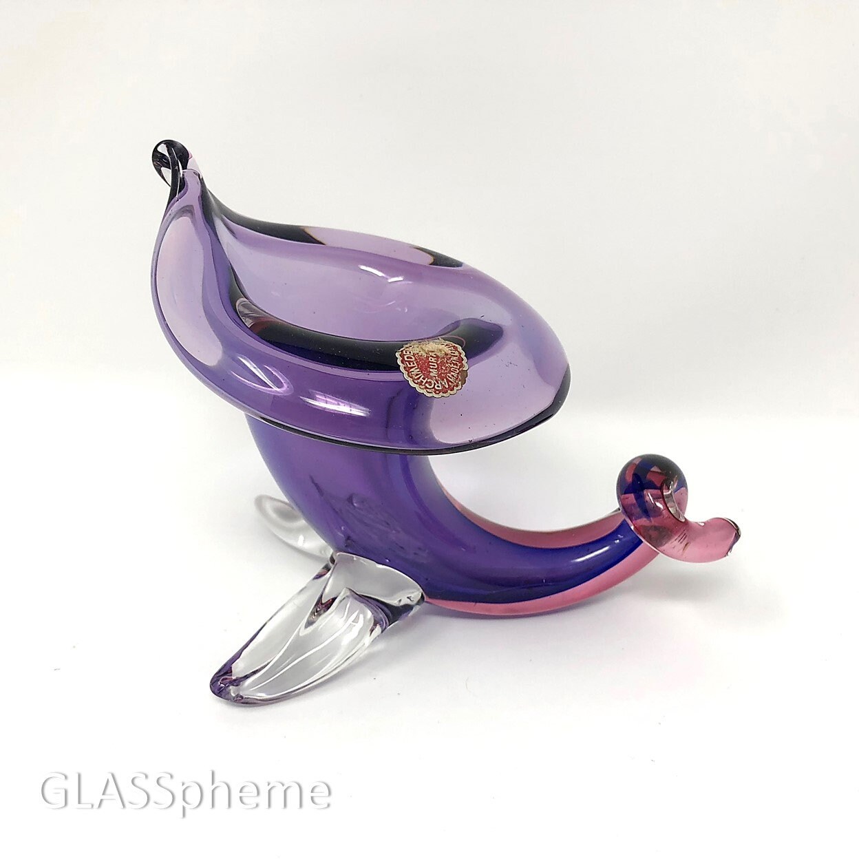 When Archimede Seguso sold his shares in Seguso Vetri D'Arte in the early 1940s, he reportedly bought out some of the company's designs to take with him. Flavio Poli first used Seguso Vetri D'Arte's highly coveted purple and pink color scheme in his sommerso vases, but the color combination proved so spectacular that Archimede Seguso later incorporated it in his own work. This SUBLIME mid-century sommerso glass cornucopia or horn of plenty by A. Seguso is a stunning example of this. Our little beauty, which no longer bears a label, is indisputably a Seguso. The last photo is of the identical piece but with its label.