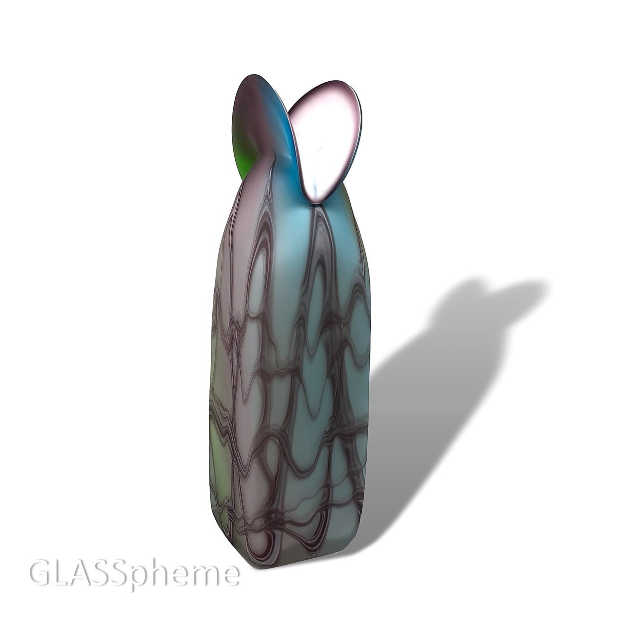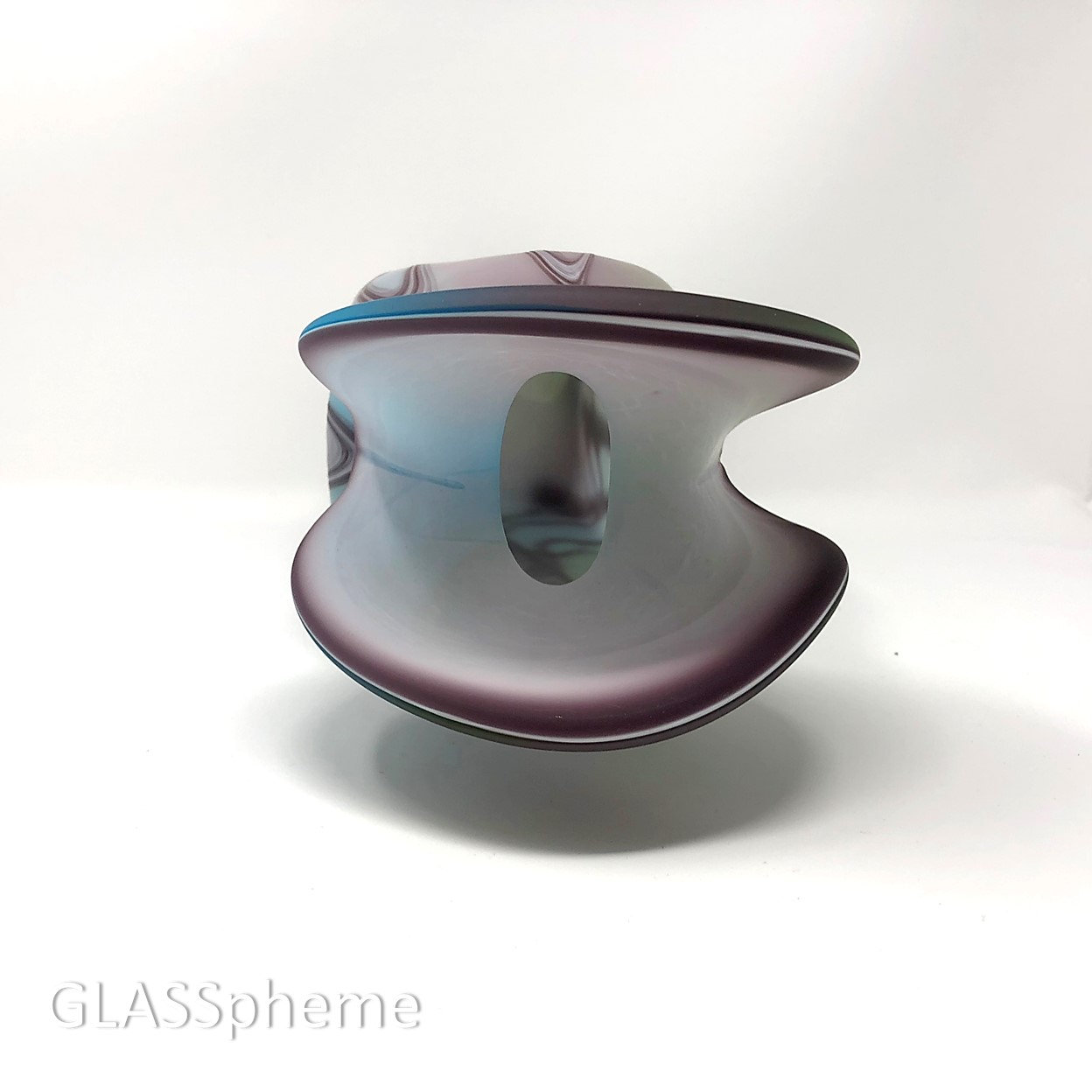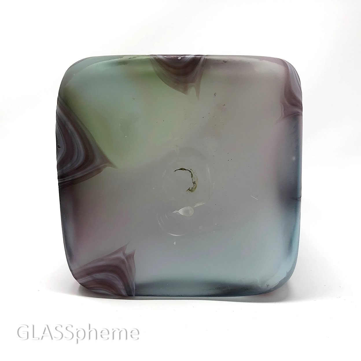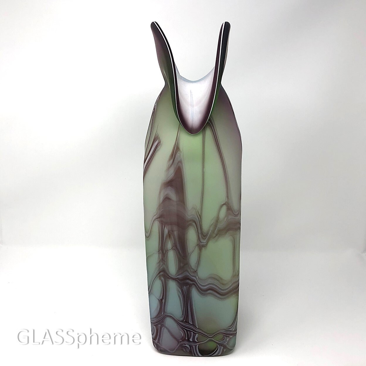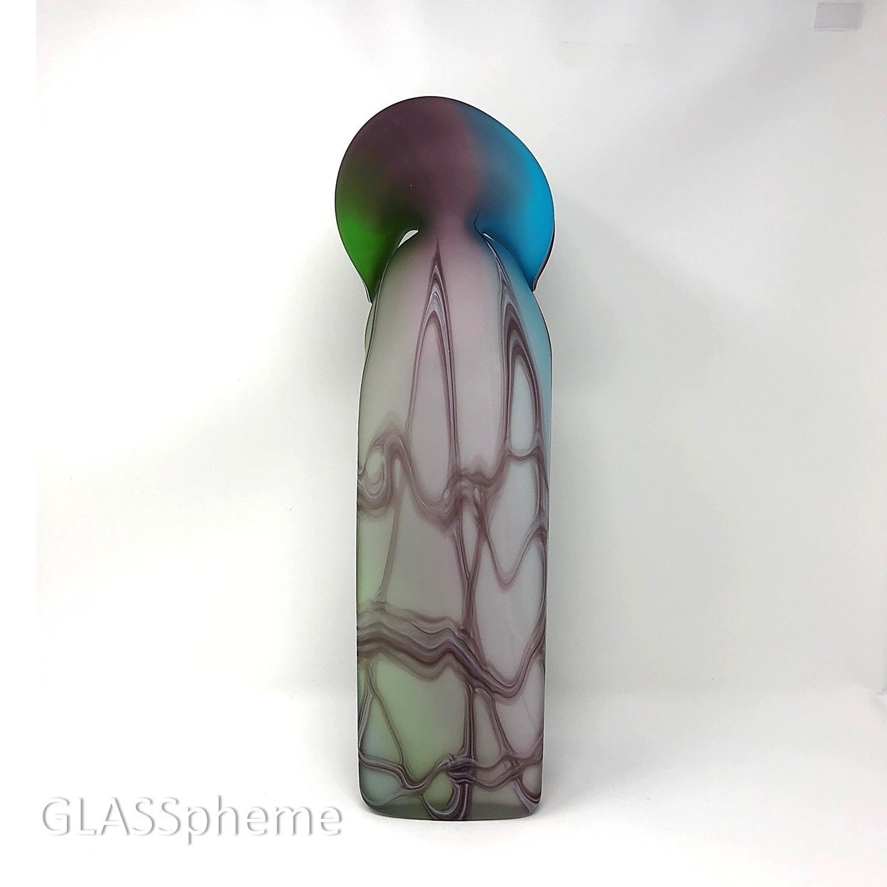 What is certain is how brilliantly colors and AWESOME this piece is! Each color represents another layer of glass--this is high quality studio art glass and there's nothing painted here. The finish is matte or satin.