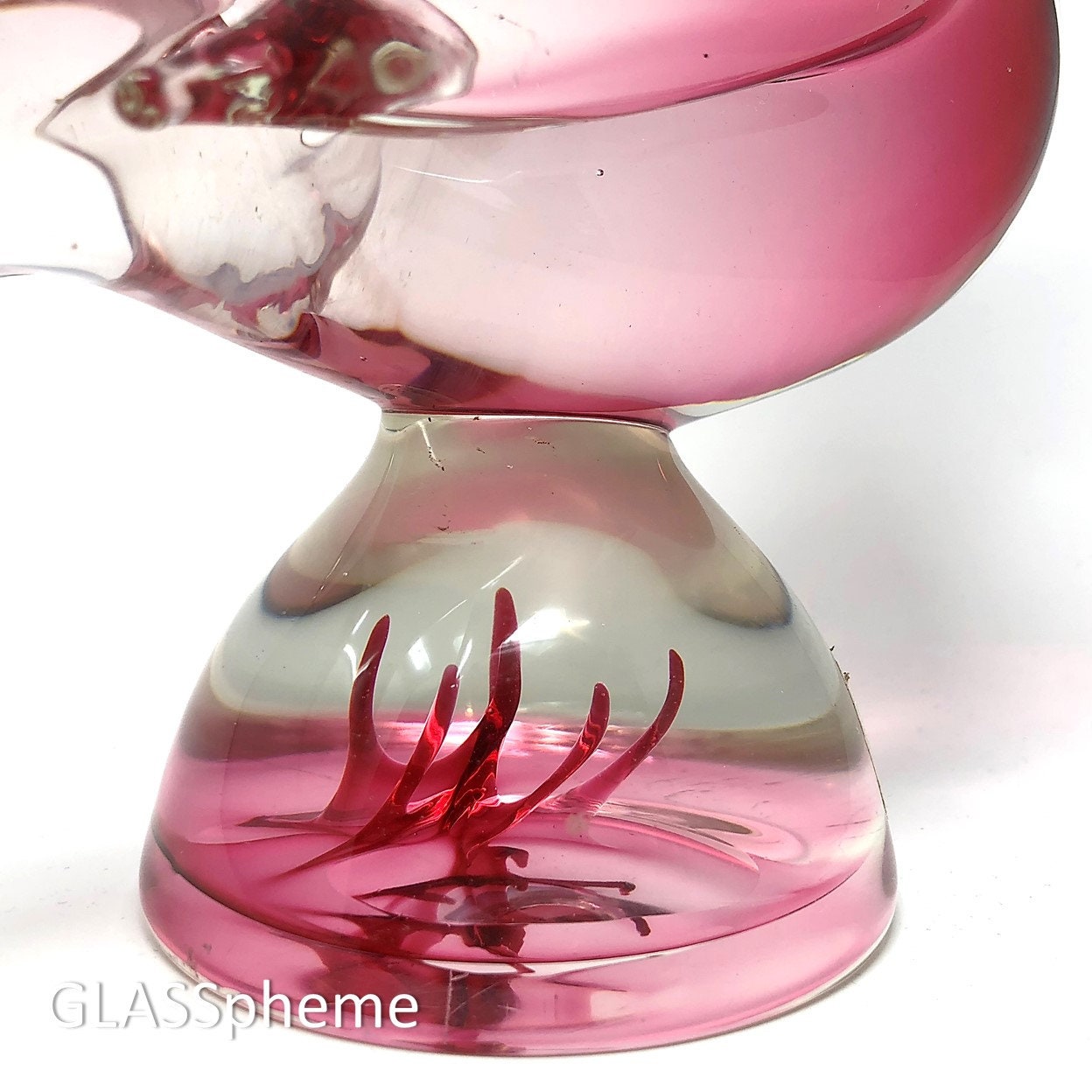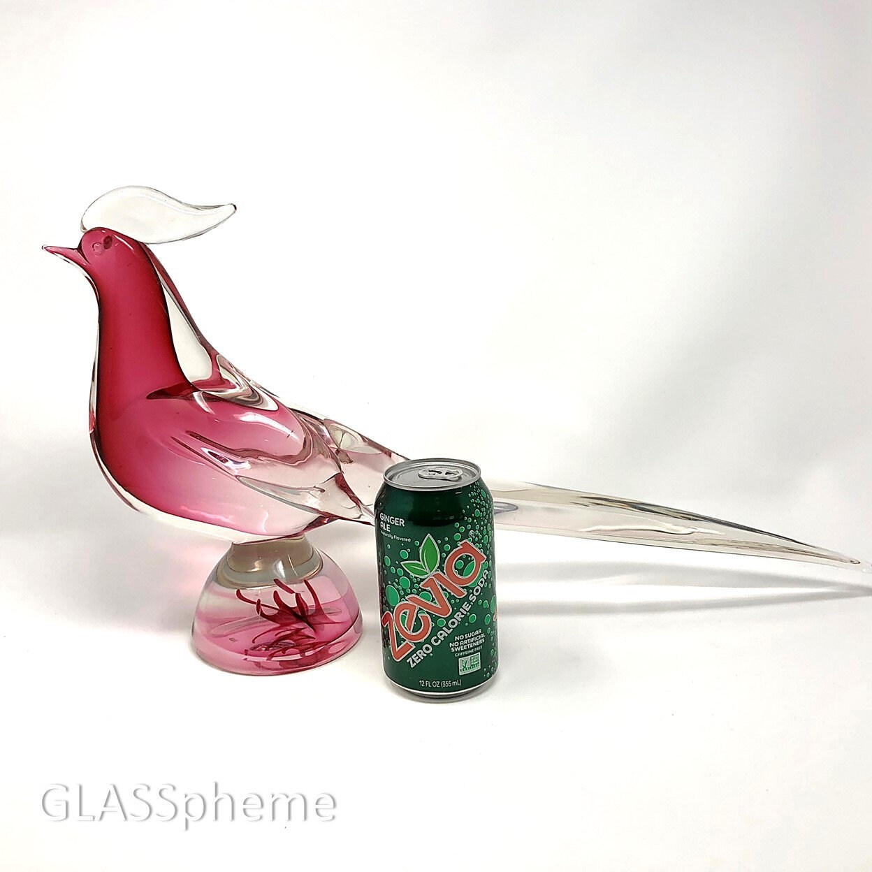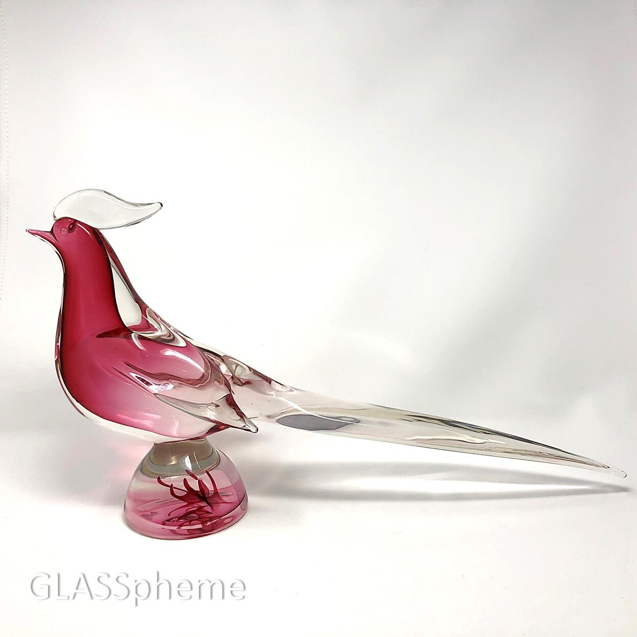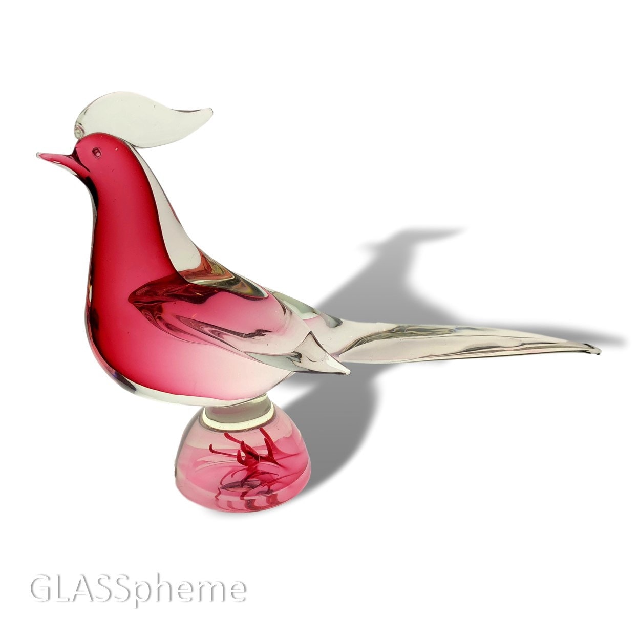 You'll have to clear off your shelves for this massive beauty! Behold this Archimede Seguso C.1950s monster-sized cranberry sommerso glass bird on paperweight stand. No labels on this one, but experienced collectors know it's the real thing, and those seeking further documentation should look no further than this link at the Murano Zoo or the screenshot I included from it: