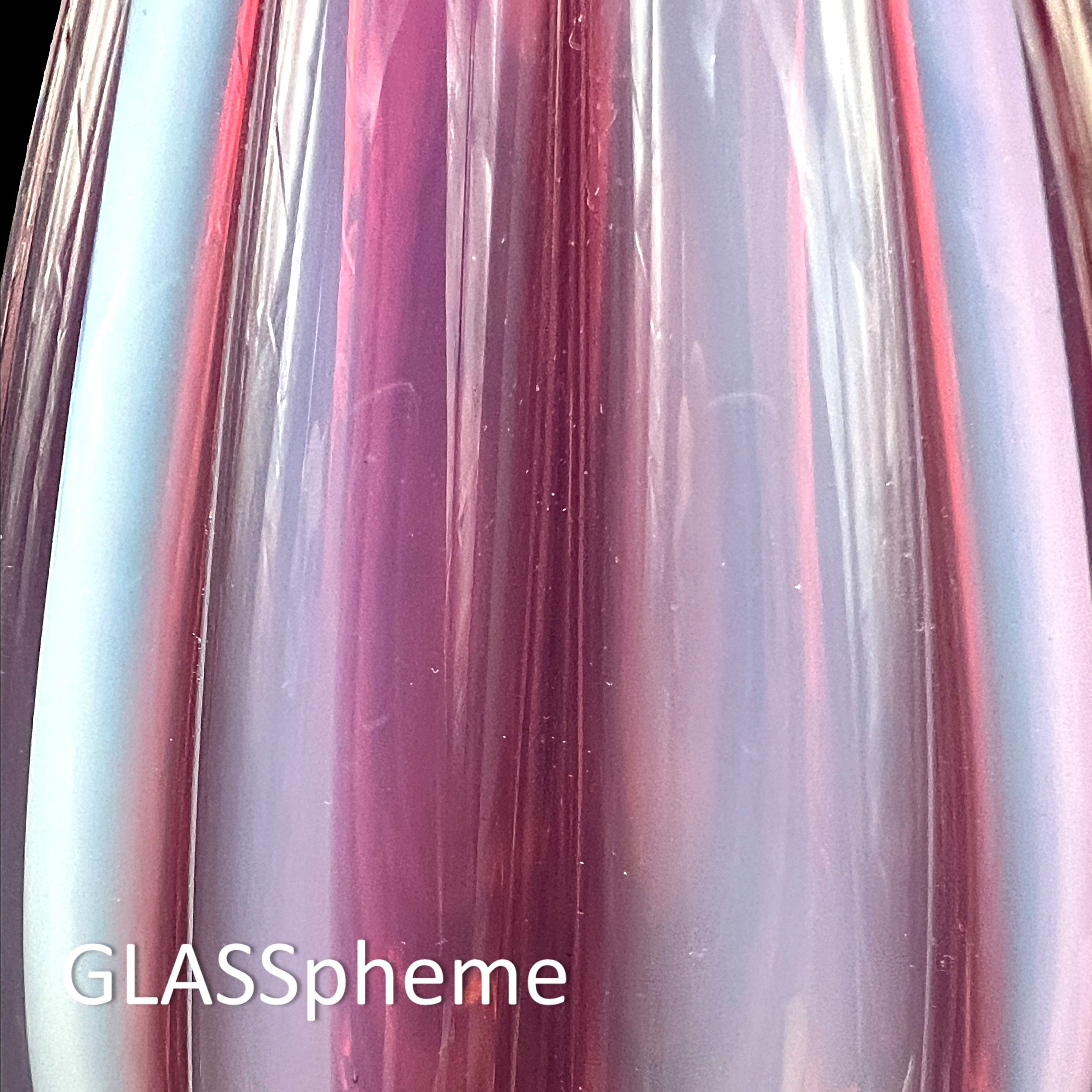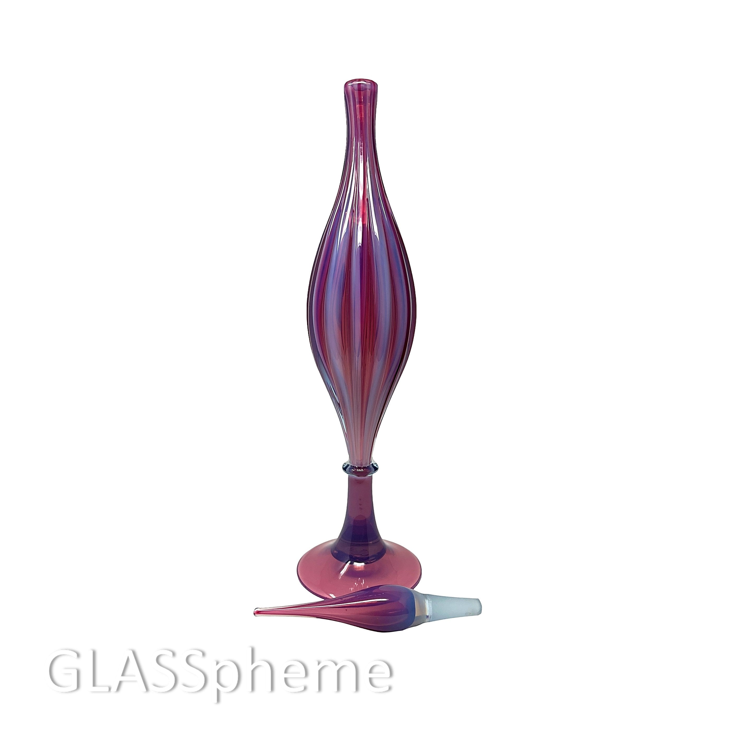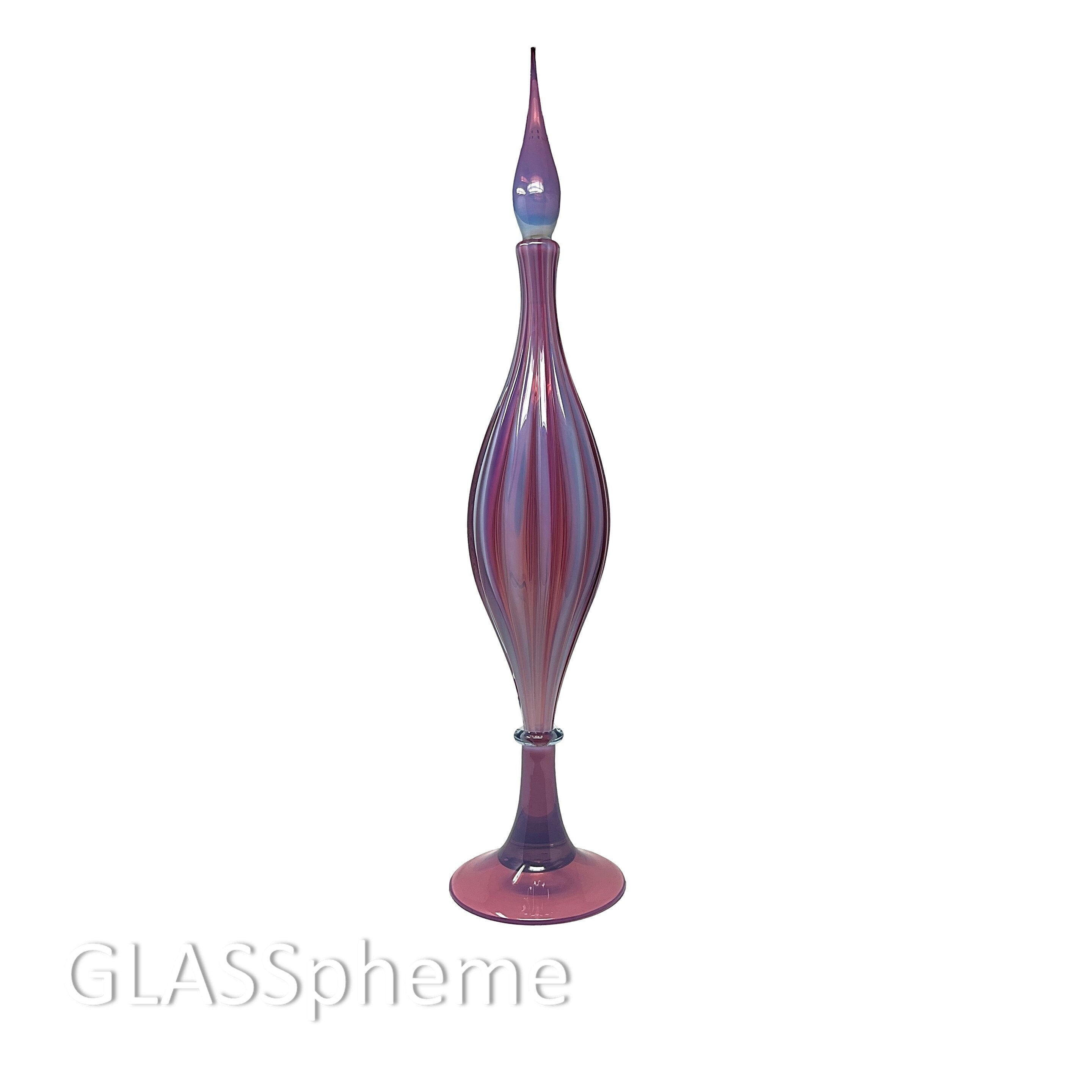 You're looking at a super rare MONUMENTALLY-sized 26" tall mid-century Murano Alfredo Barbini glass decanter done in devastating purple, pink, and maybe some blue opalescent glass in a rib design. The massive proportions and utter perfection of this otherworldly beauty will simply leave you (and everyone who enters your home) breathless. This is Murano luxury at its finest. This decanter | bottle is featured (in a different color) in Barbini's catalog for Weil Ceramics and Glass (see last photo).