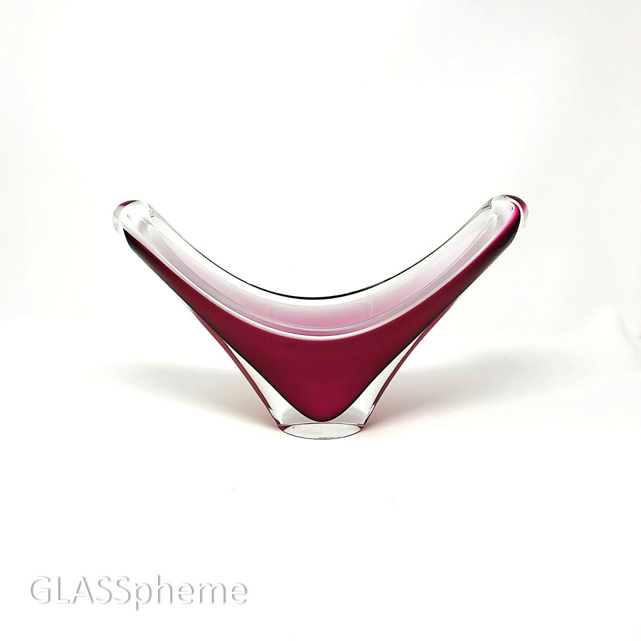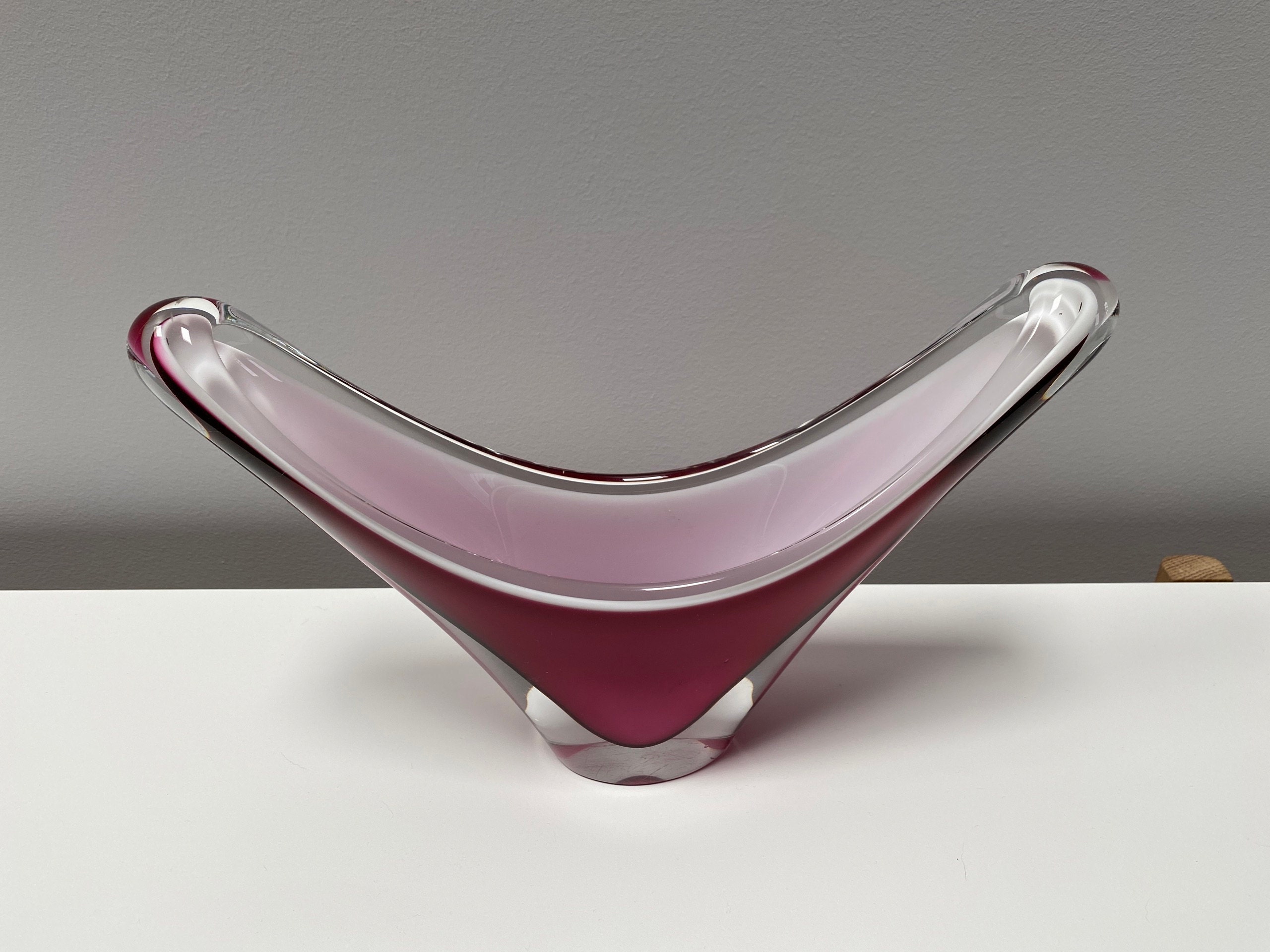 This spectacular mid-century Flygfors Coquille hot pink biomorphic sculptural cased | sommerso crystal bowl by Paul Kedelv is absolutely breathtaking and in seriously minty condition given its nearly 60 years in existence. "Flygfors 59 Coquille" is signed on the base.