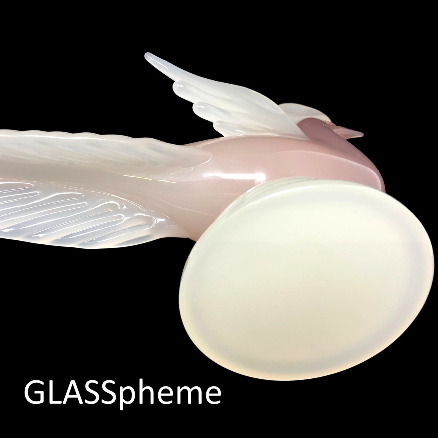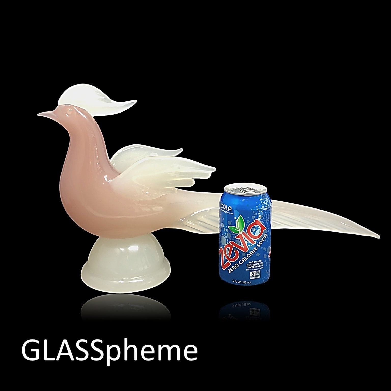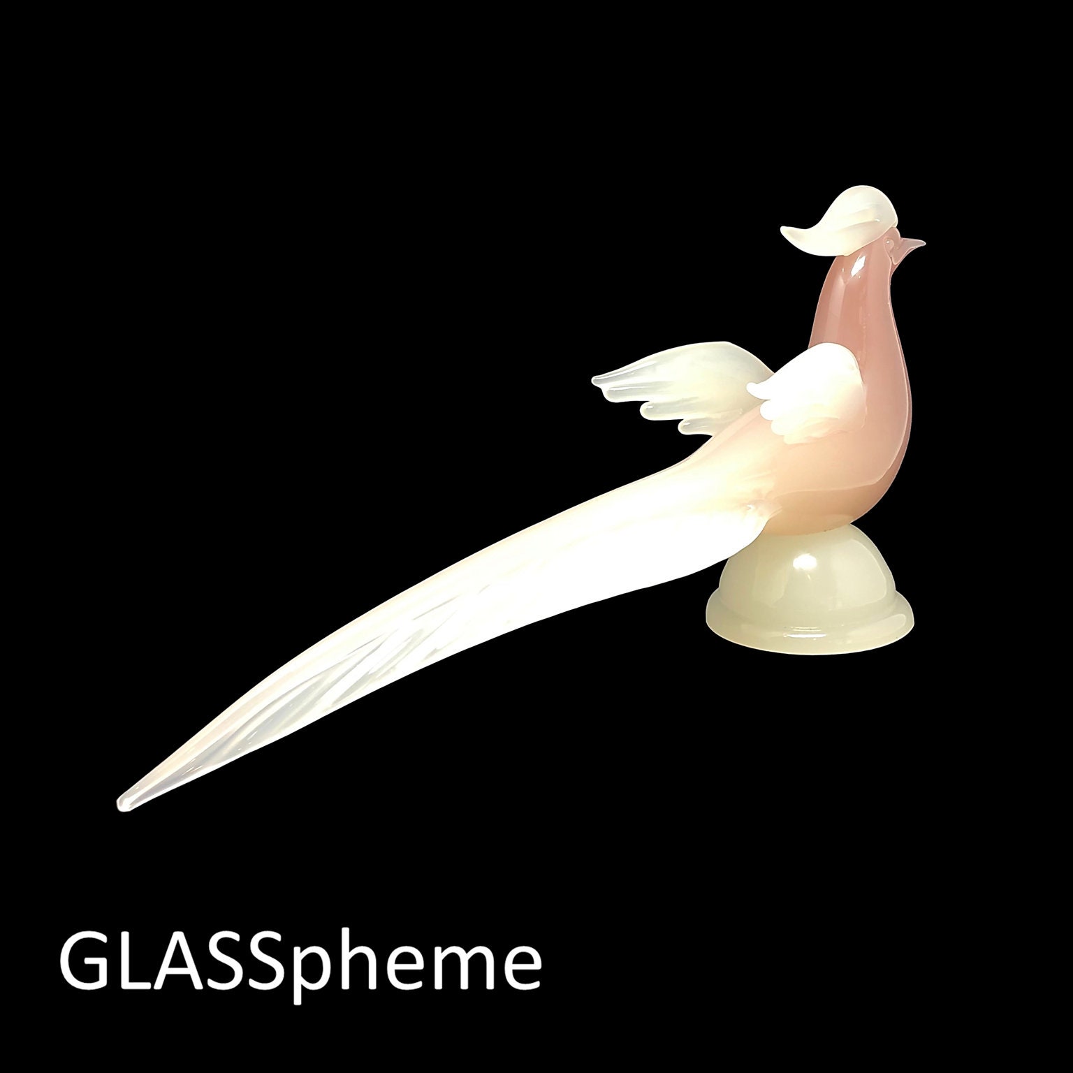Behold this SPECTACULAR Archimede Seguso mid-century monster-sized alabastro glass bird! The body is done in a delicious pink/lavender alabastro glass which gradually fades into the creamy white tail (this is the Sfumato technique). No labels on this one, but Seguso collectors know it's the real thing, and those seeking further documentation should look no further than this link at the Murano Zoo or the screenshot I included from it: