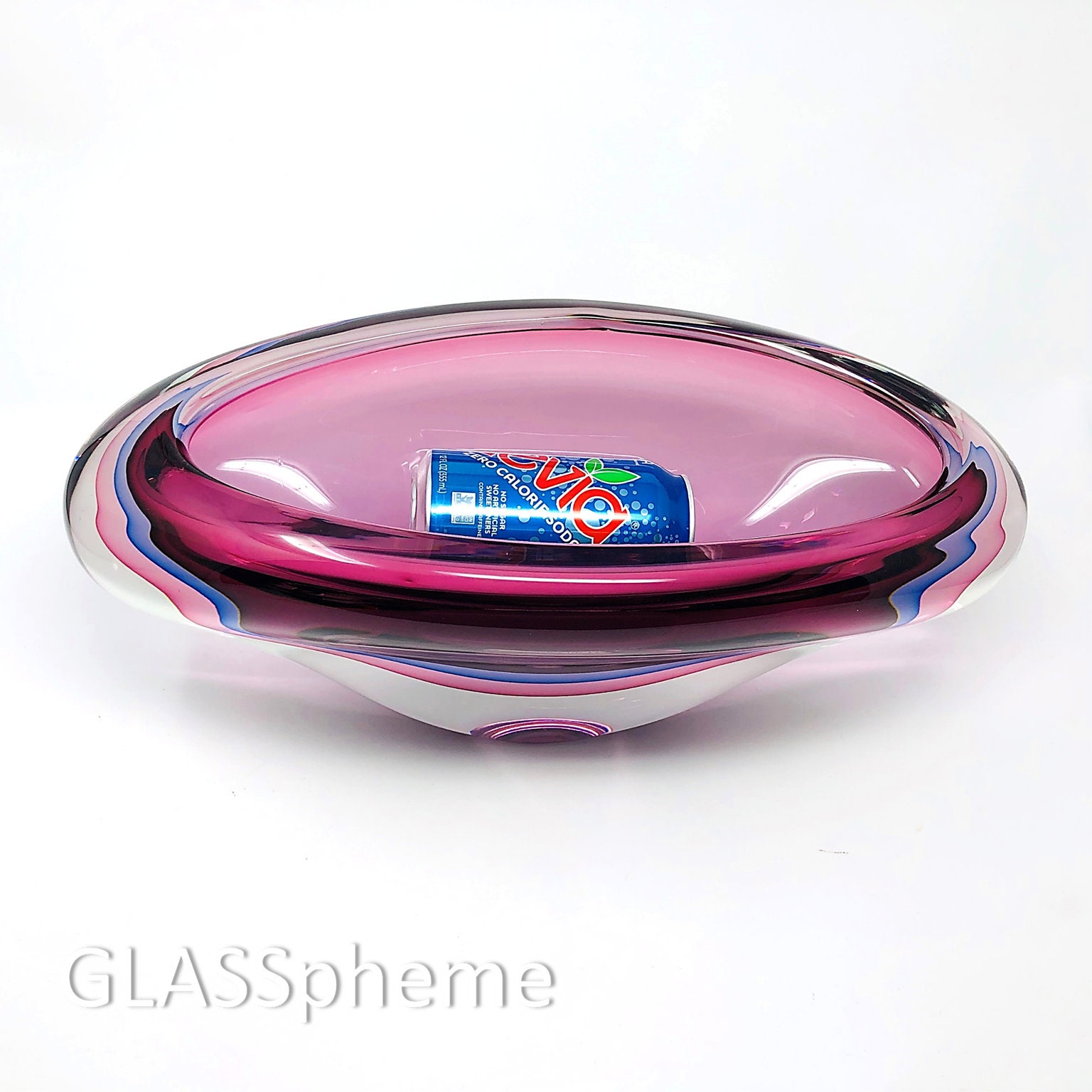 You're looking at the most magnificent MONSTER Luigi Onesto/Oball Glass sommerso glass centerpiece pretty much EVER. Oball's massive sommerso glass pieces are legendary and highly coveted and this one is absolutely the largest I've ever encountered. This is over TWENTY ONE pounds of solid glass! Standing about 7.5" tall, this monumental beauty is nearly 17 inches long and 7.5" deep. Luigi Onesto's (and Oball's) biggest claim to fame is its large-scale sommerso work and if you check out the close-up, you'll see how truly impressive and masterful Luigi Onesto's sommerso work is. Our stunner has no labels remaining, but is signed by Luigi Onesto, Murano Italy on the base.