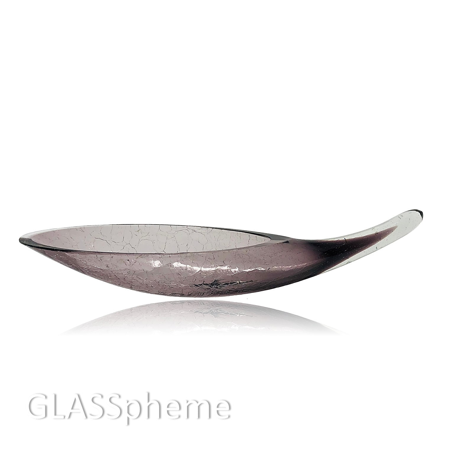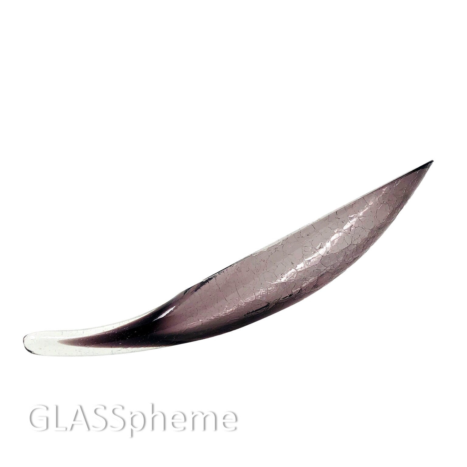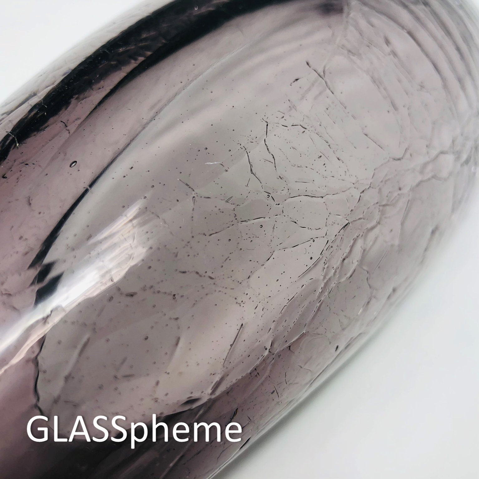 You're looking at a gorgeous rare Blenko #964-S horn or cornucopia designed by Winslow Anderson, Blenko's first professional designer, somewhere around 1950. I believe that 1965 was the first year since the mid 1950s that the 964s (smaller size) horn didn't appear in the Blenko catalog. That's some testiment to the enduring allure of this graceful and beautiful design! Our 964s horn is done in 1959 and 1960-only LILAC, one of Blenkos most highly coveted colors. Good luck finding another Blenko horn vase in Lilac (or lilac crackle glass for that matter): of the 88 Blenko 964 horns of all sizes sold online over the last decade+ (according to Worthpoint, an online auction sales aggregator), exactly ONE was done in lilac crackle. (And it wasn't this one!) :)