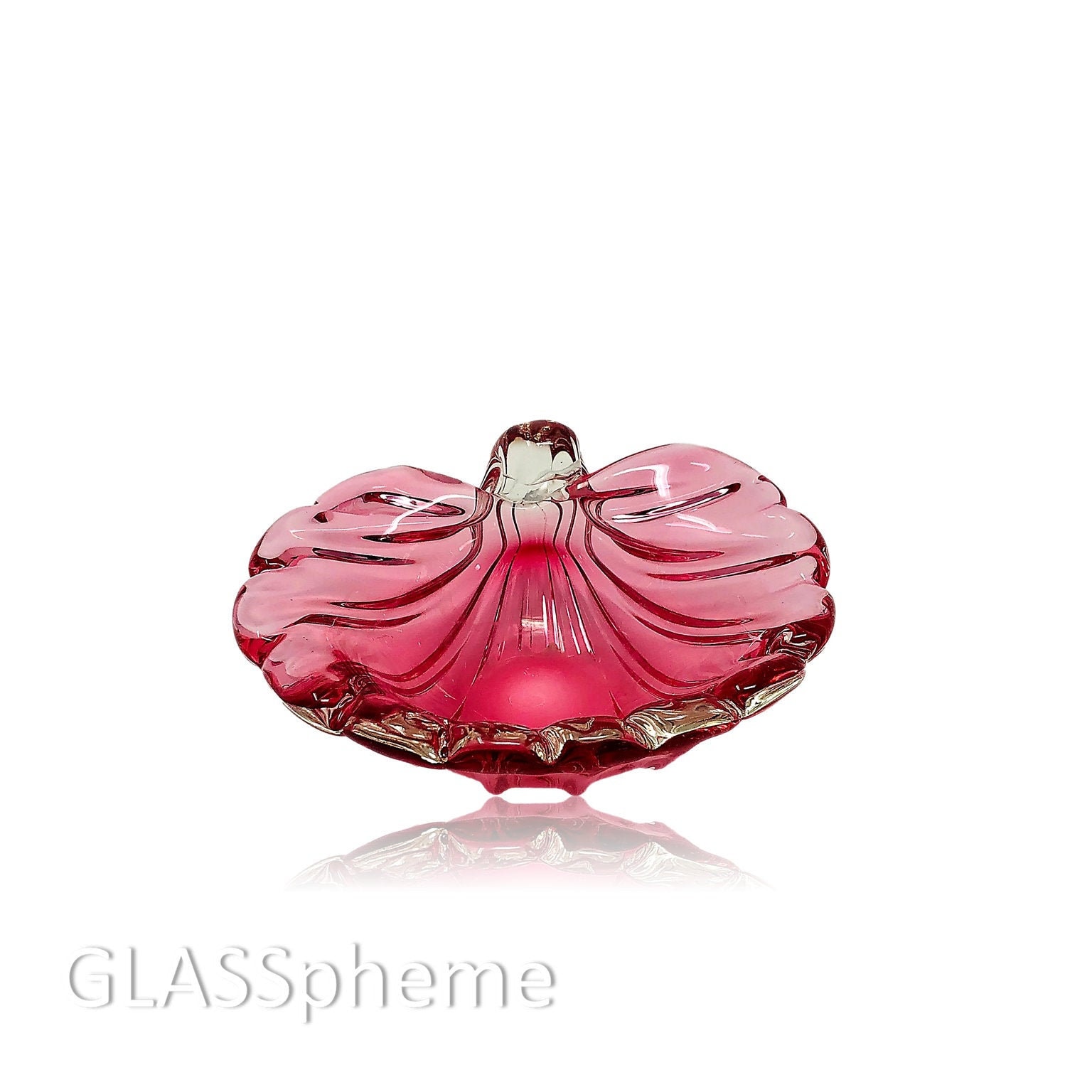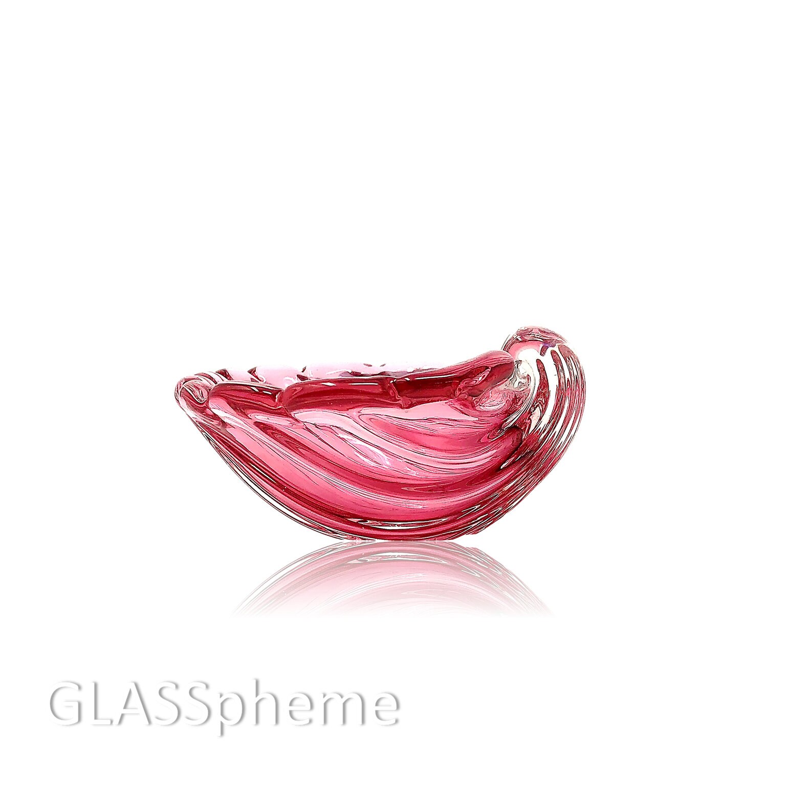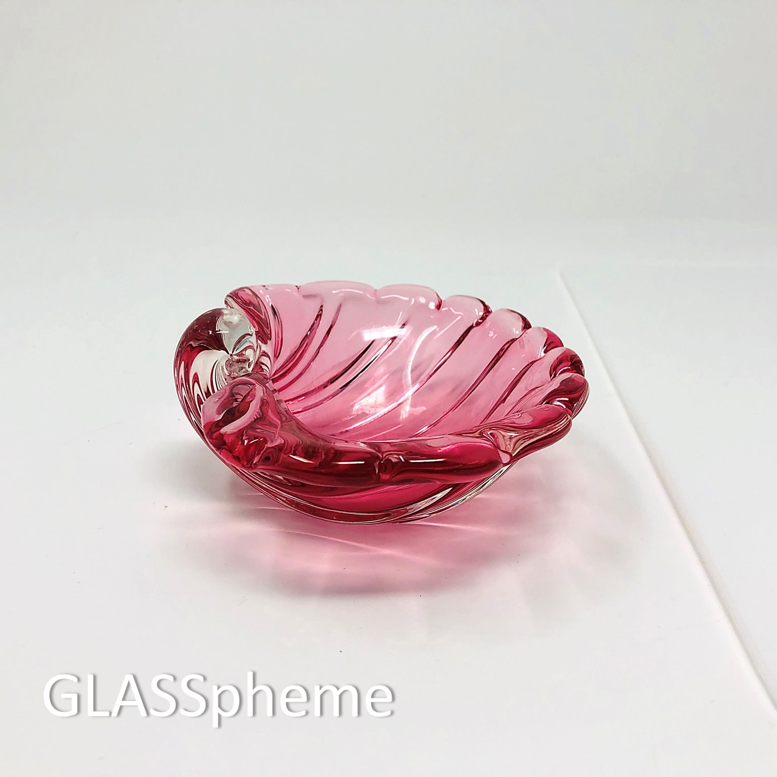 Incredible how this small ribbed cranberry glass trinket dish, bowl or ashtray plays with the light! The optics of the piece make it sparkle and shine--so much so that I wonder whether there's a touch of iridescence on the surface. Possibly by Archimede Seguso, this gorgeous little piece sports a glowing unearthly quality. Delight in its color, craftsmanship and impossible beauty.