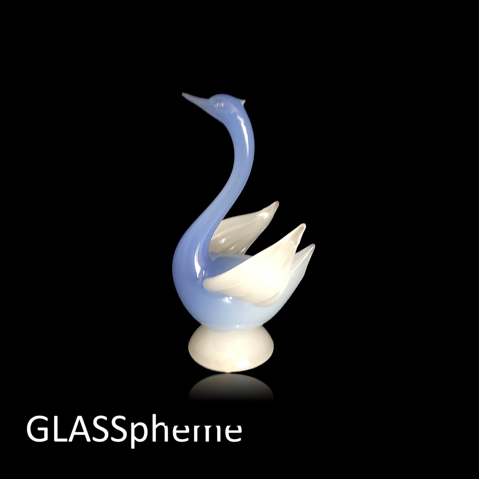 This is a TO-DIE-FOR genuine highly documented Seguso alabastro swan in Archemede Seguso's killer PERIWINKLE: this piece does NOT have a Seguso label on the base, but our identical piece in pink does: https://www.glasspheme.com/listing/597743634/c1950s-archimede-seguso-murano-alabastro