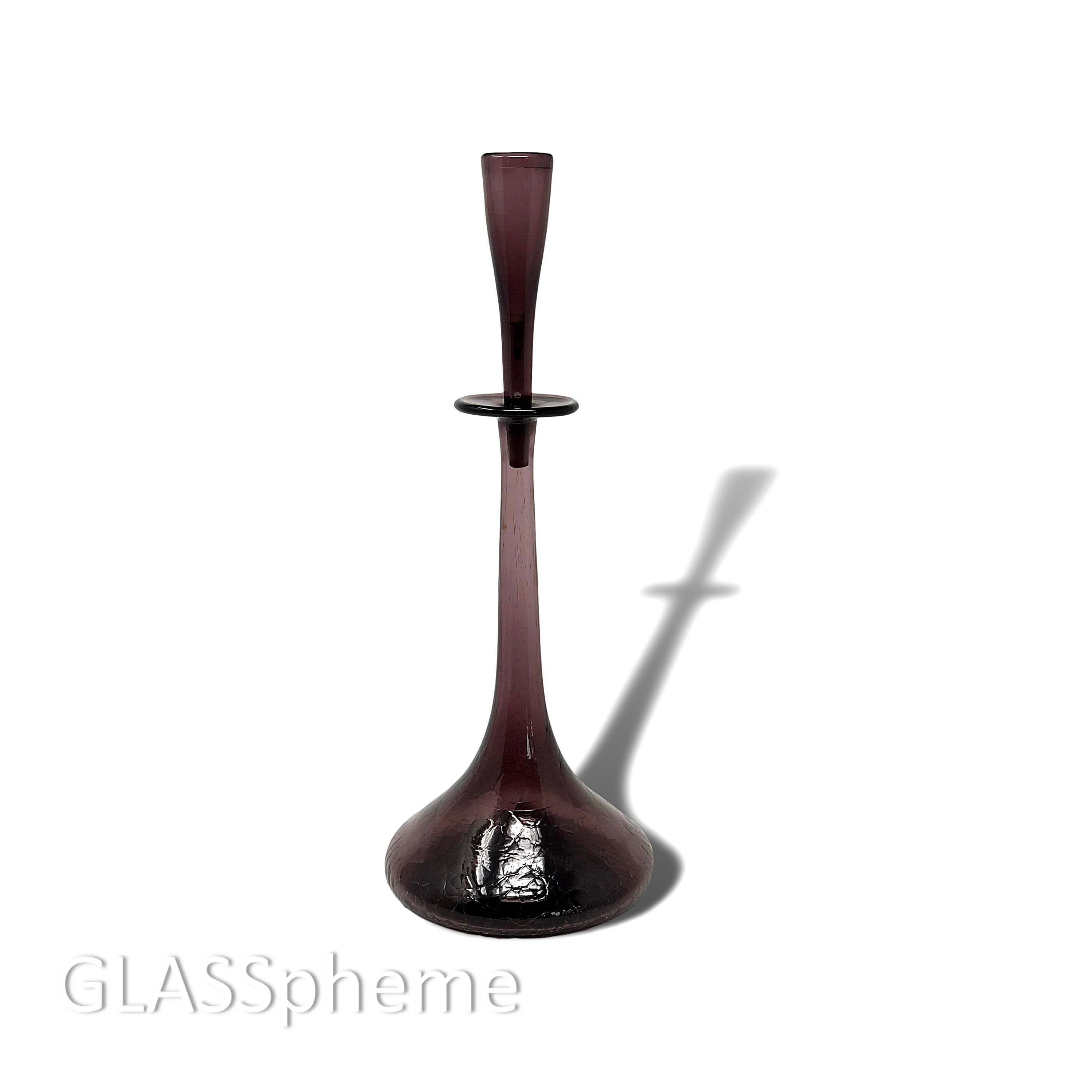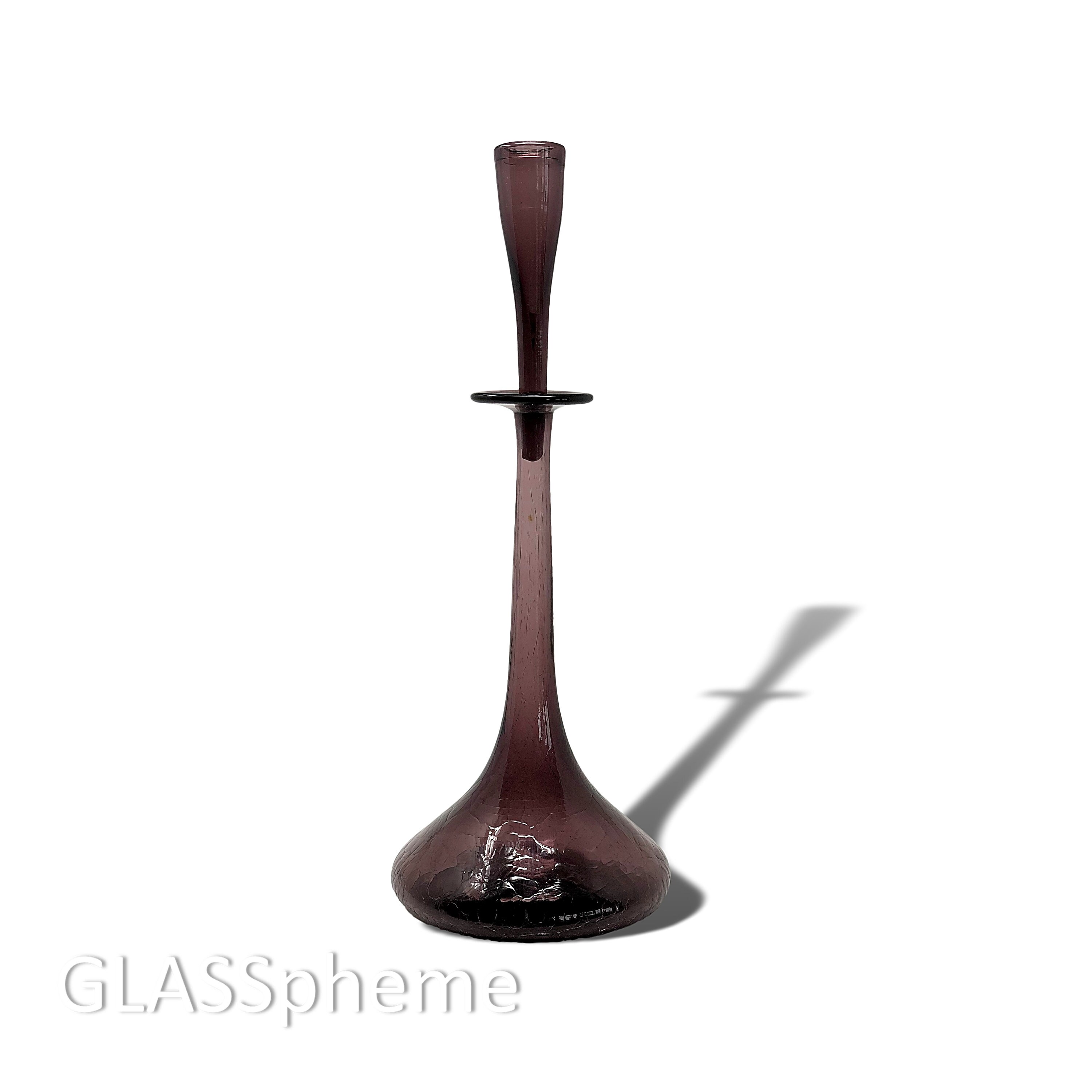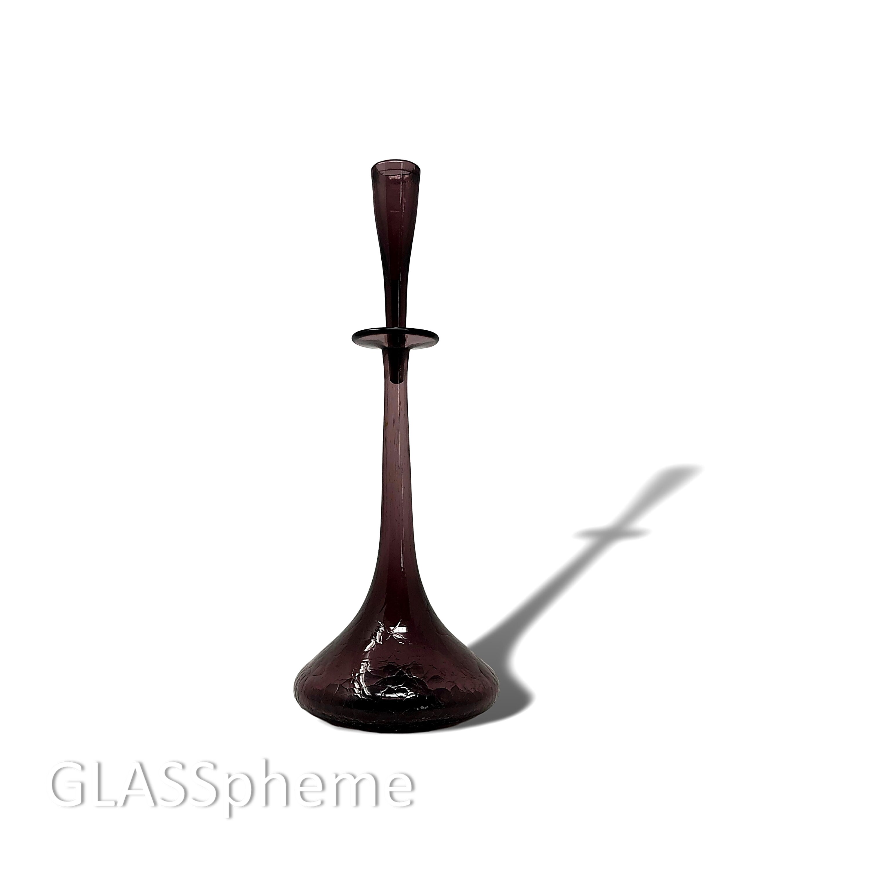 Blenko's super mid mod 1960 'shot glass' decanter, Blenko catalog #6027 by Wayne Husted, is one of Blenko's most iconic, beloved and highly coveted designs. As such, they were produced for most of the 1960s and Worthpoint documents over 100 that have changed hands over the last decade in online auctions. But guess how many of those 100+ decanters were in Amethyst? ONE. That's how rare this popular design is in Blenko's gorgeous amethyst!