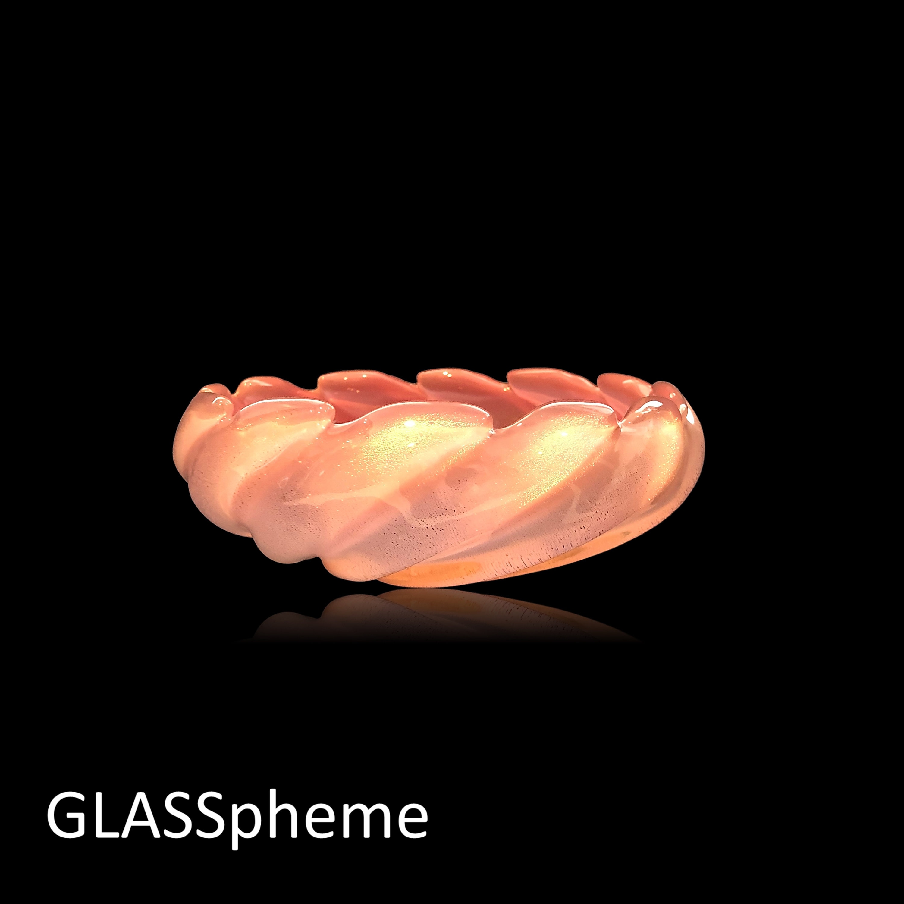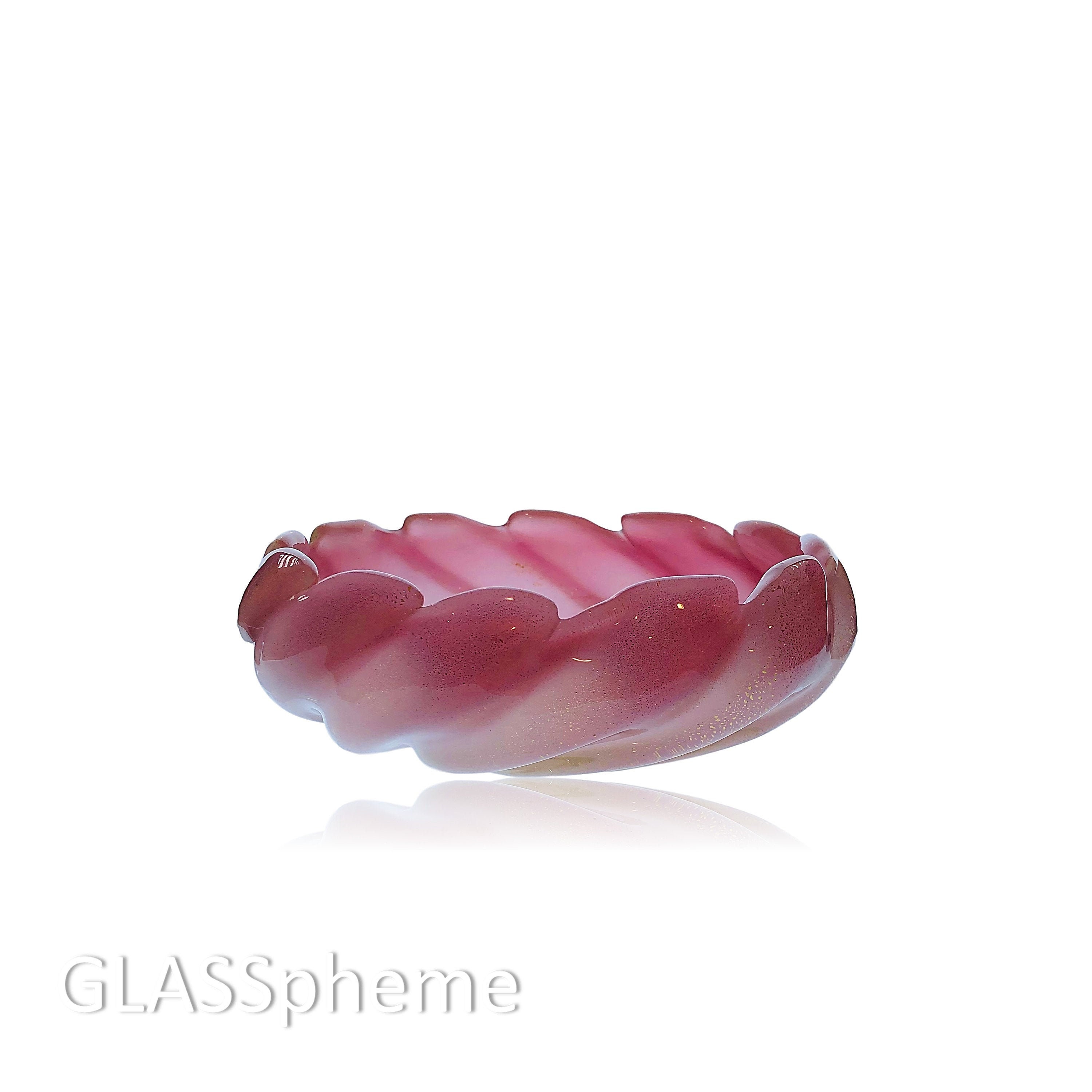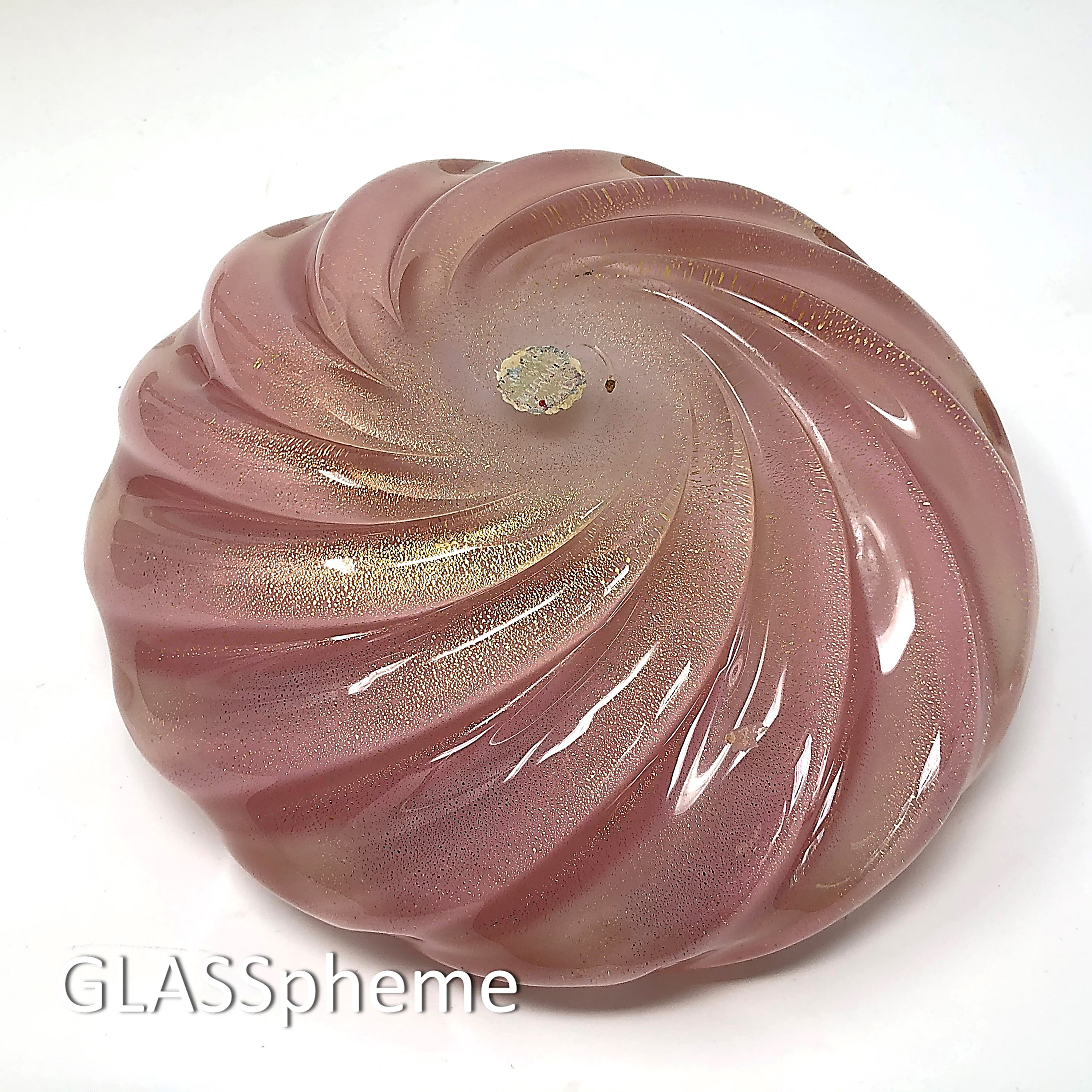 One of the most beautiful pieces of Murano glass I have ever seen, this weepworthy "opalino a coste' gold-infused pink opalescent glass bowl | dish | centerpiece by Archimede Seguso, documented in Pina's ARCHIMEDE SEGUSO, will blow you away! This is the very first speciman I've seen 'live' in nearly 20 years of collecting and there are no other examples to be found online (that I could find), so I'm thinking this brilliant beauty is also pretty rare. With the recognizable red scalloped "Made in Murano" label remnant on the base, there's no doubt, you're looking at the real thing.