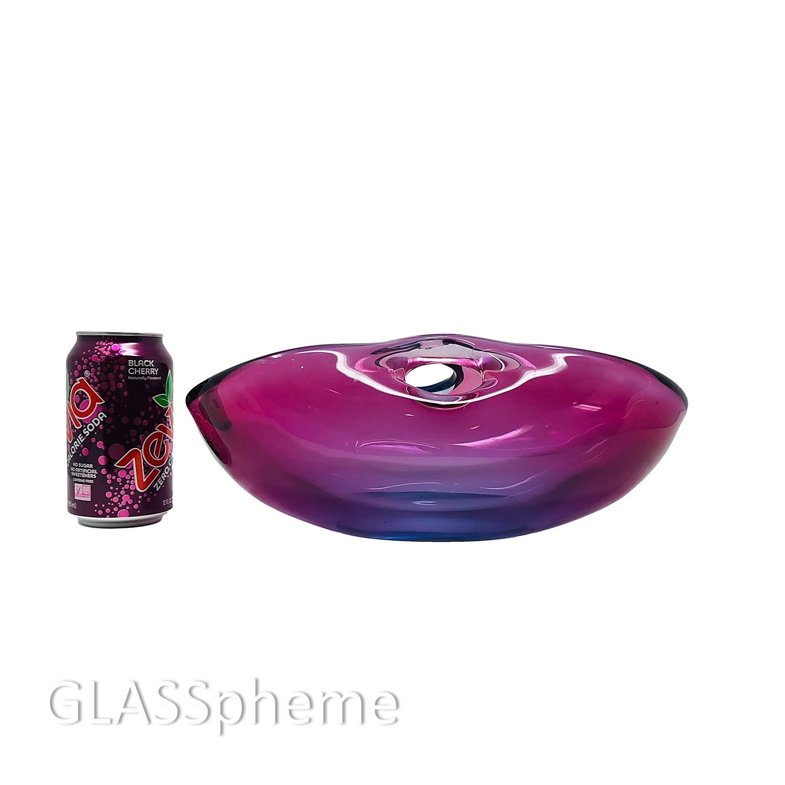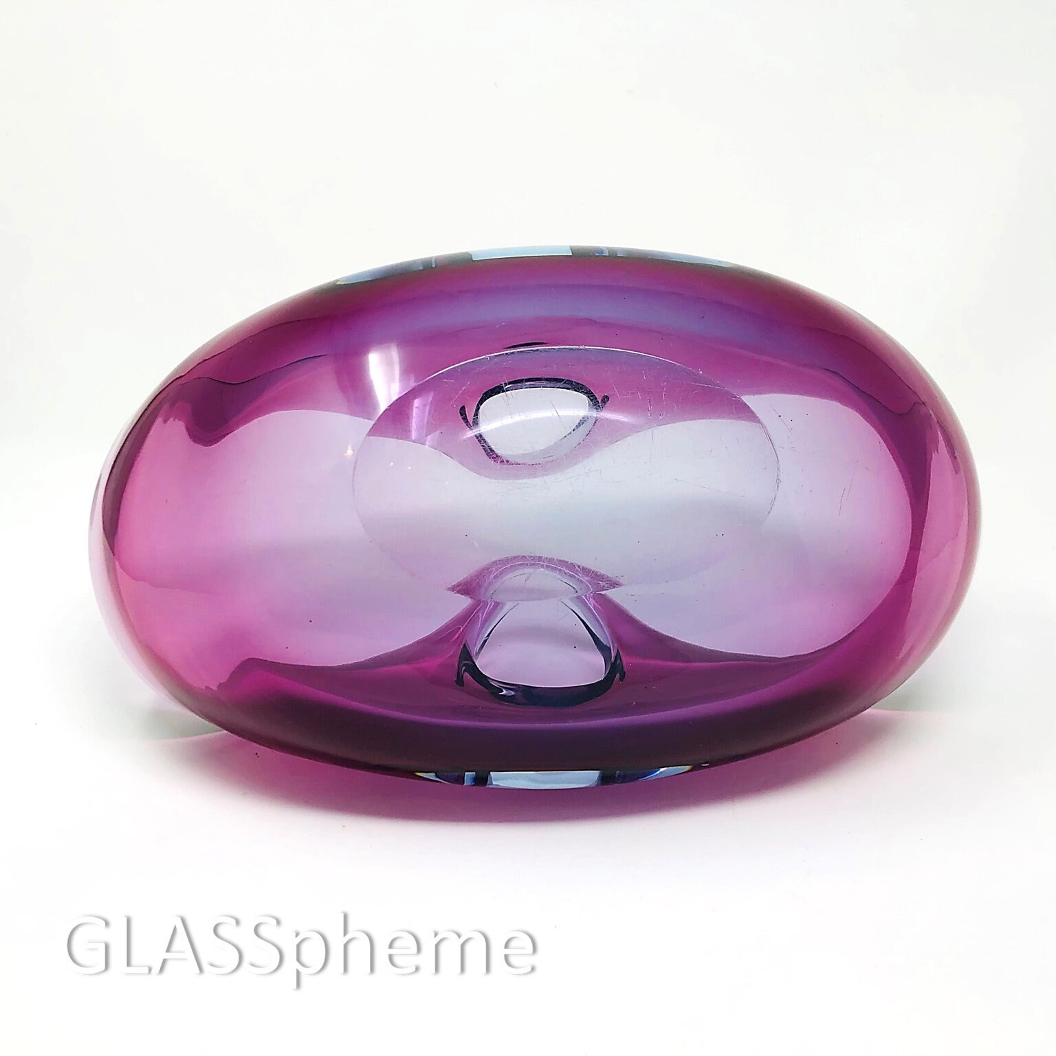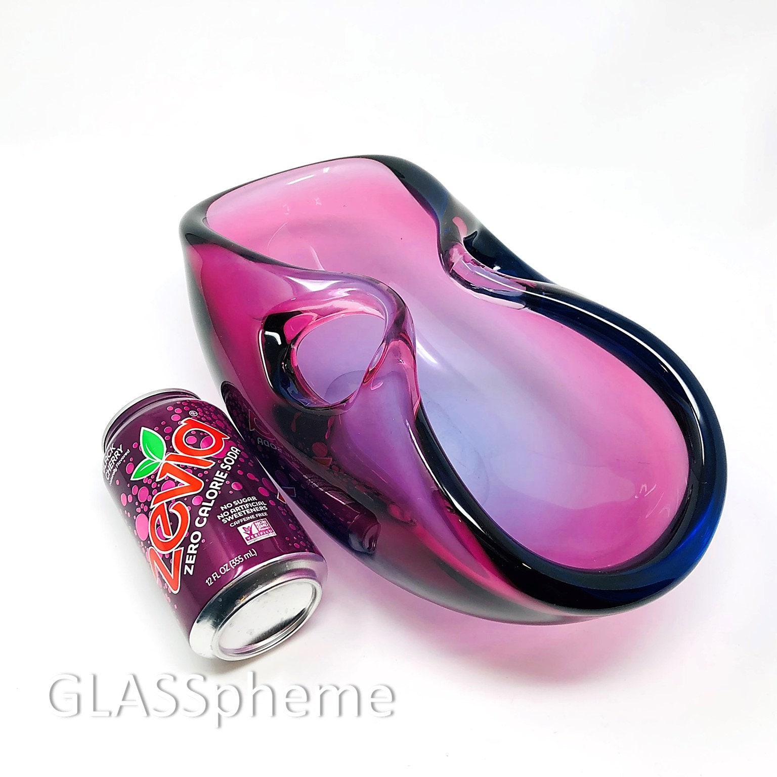 This LARGE thick heavy magnificent pink-to-purple glass bowl by Archimede Seguso is one of the most MAGICAL pieces of mid-century Murano glass you'll ever see. It's done using the SFUMATO technique where each color is so skillfully blended into the next that you cannot see where one color ends and the other begins. So this incredible beauty is pink, purple, and every shade in between. This remarkable work of art will dazzle you as it changes in intensity and hue with the light. (It makes me wonder if this piece contains neodymium oxide.)