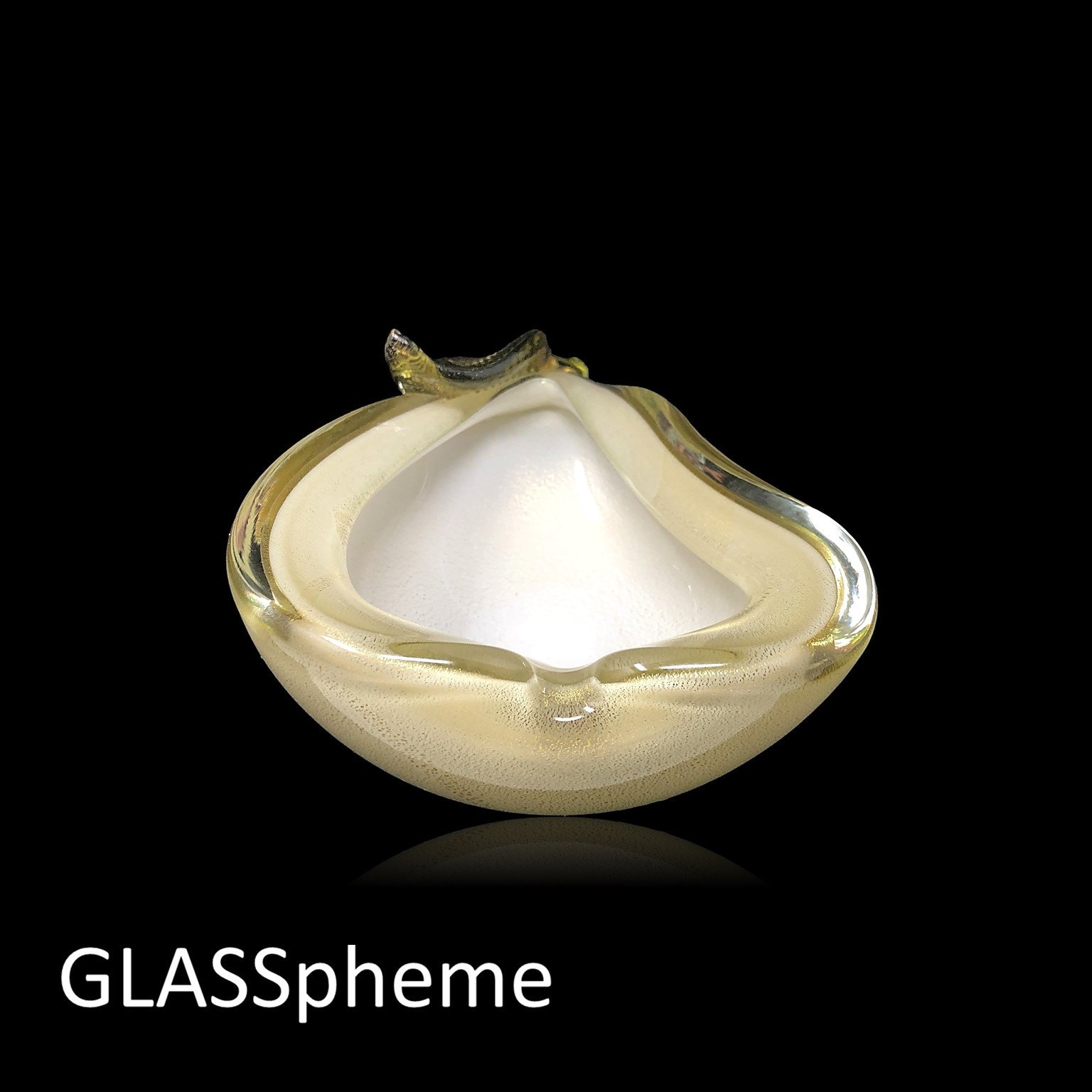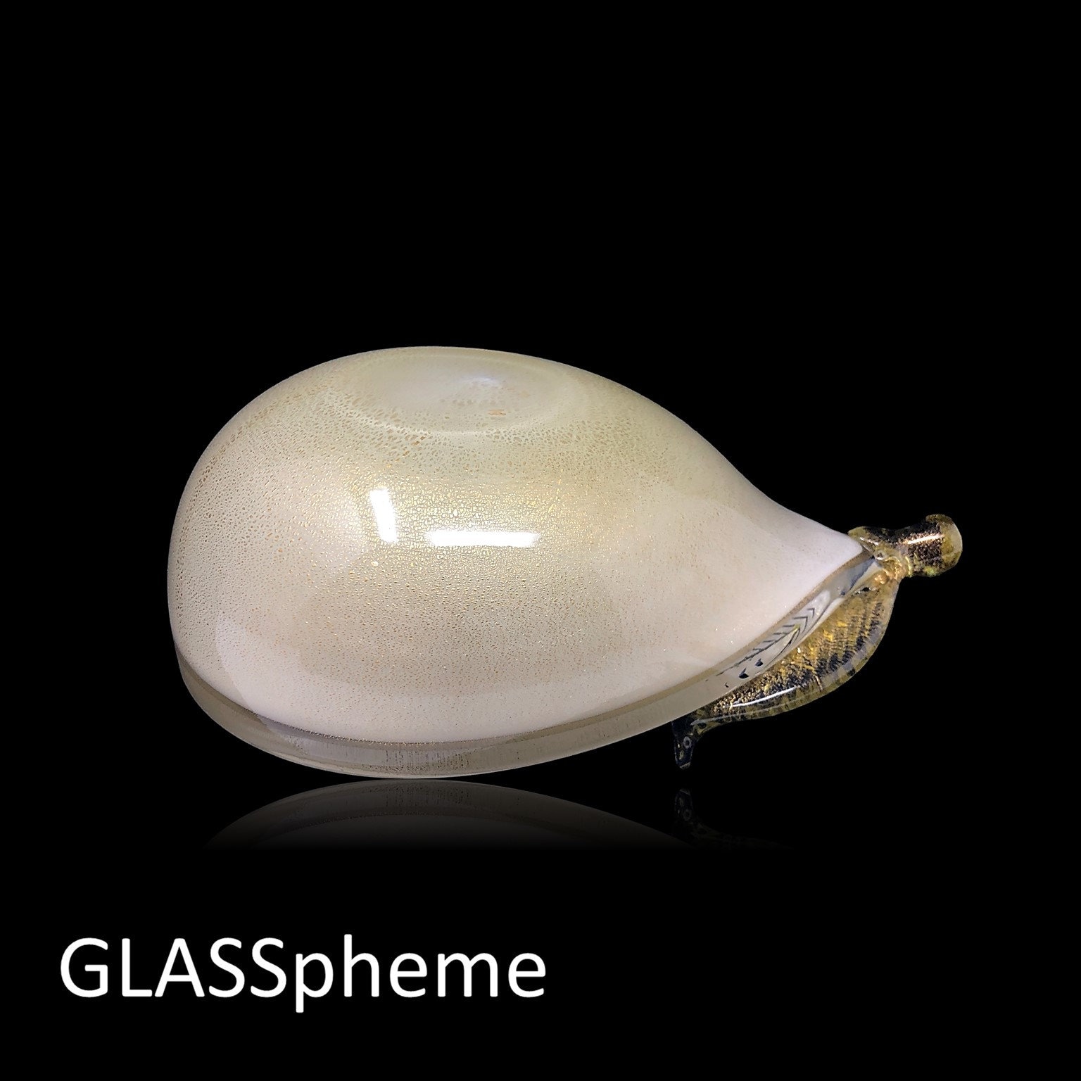 Both iconic and indescribably exquisite, this documented Alfredo Barbini cream lattimo | gold aventurine glass pear dish | bowl will take your breath away. Here's the gift that will secure your place as the genius gift giver of all time--it is the embodiment of beauty and perfection. If you can even stand to give it away.