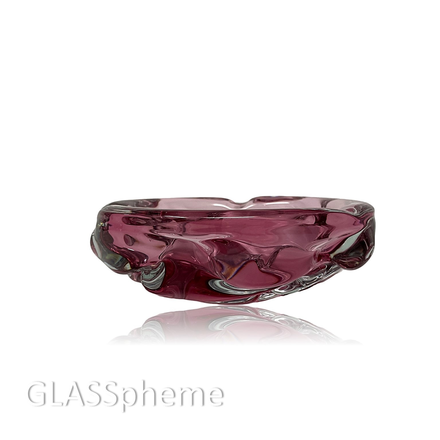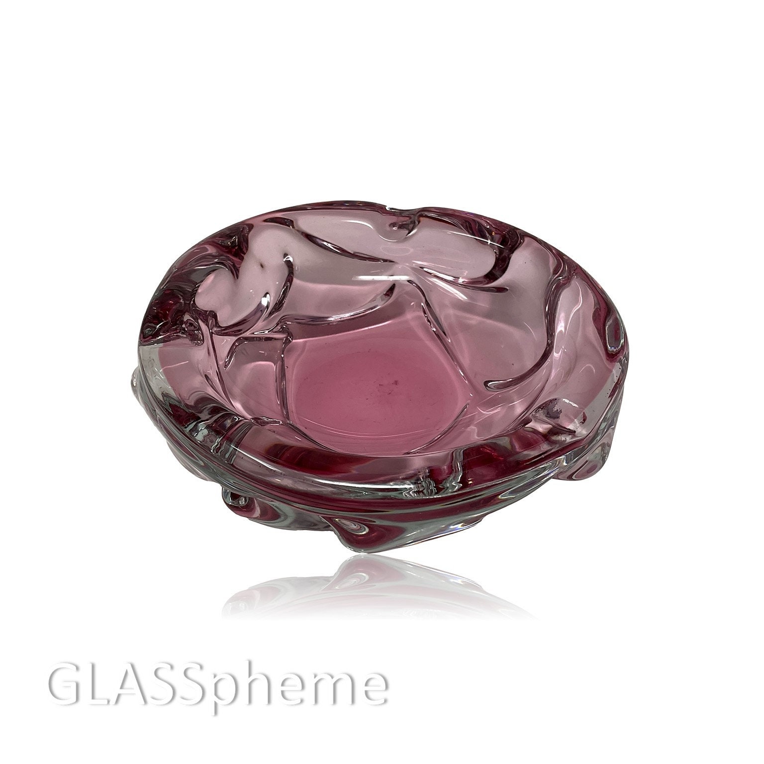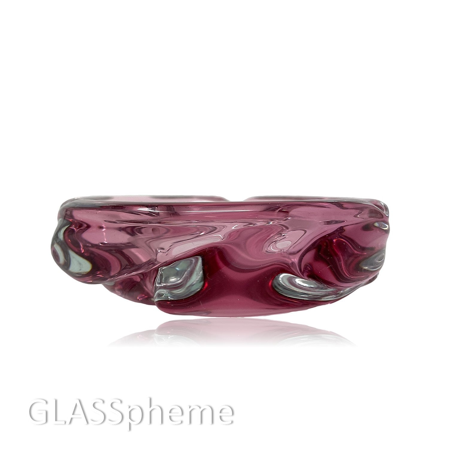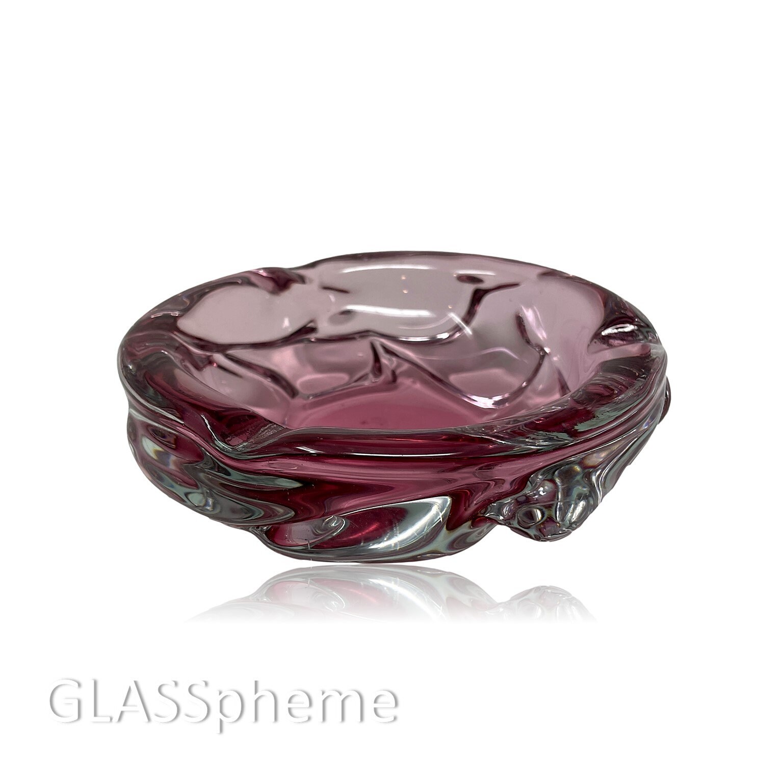 You are looking at a big mid-century modern Murano cased glass bowl, ash receiver or trinket dish probably by Archimede Seguso. The label is long gone, but this lumpy-sided freeform design is well documented. This gorgeous beauty is done in pale pink glass magically accented with clear crystal glass depending on the angle viewed and light. Weighing in at nearly 4.3 lbs, this substantial beauty is in very good condition and would make a treasured gift.